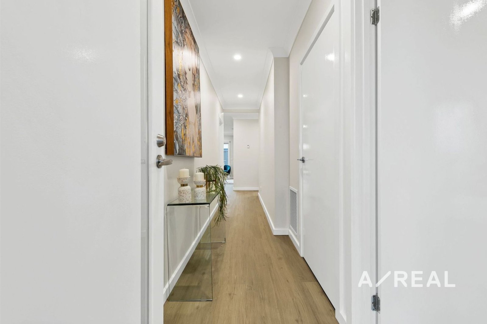 Step through the elegant entryway onto quality flooring that sets the tone for the rest of this inviting home. The master bedroom is bathed in natural light and features a spacious walk-in robe and a well-appointed ensuite. Two additional generously sized bedrooms, each with built-in robes, share a central bathroom complete with a luxurious freestanding bathtub and a separate toilet—perfect for growing families.