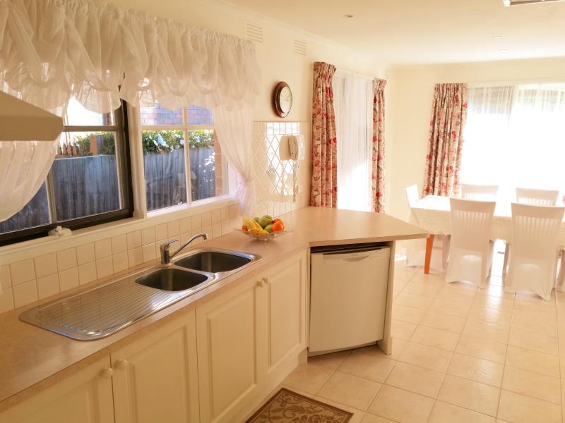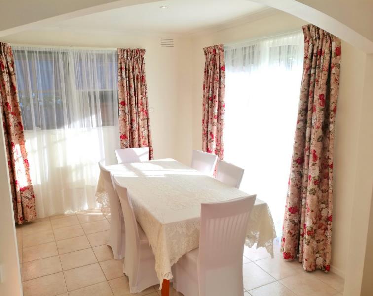 - Tiled dining area and spacious kitchen, equipped with ample bench space, a gas cooktop, wall oven and dishwasher.