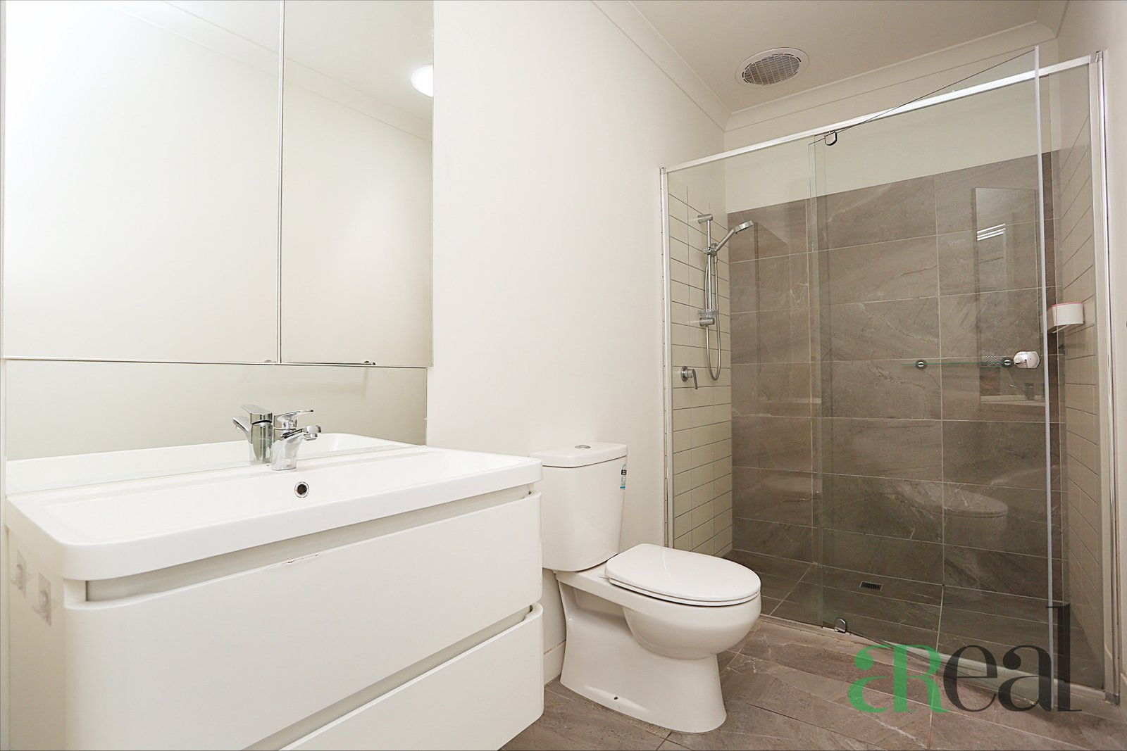 - One bathroom with shower and mirror cabinet.