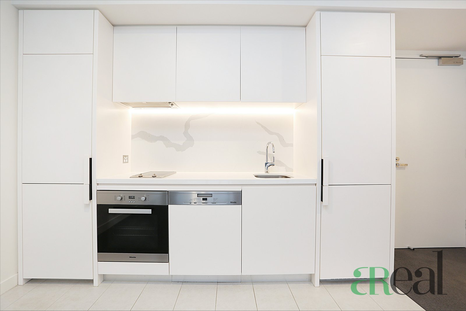 This stylish apartment features a light and spacious open floor plan with state-of-the-art white stone kitchen fitted with premium Miele appliances and ample preparation and storage space. The living/dining room, bright with full length glazing, accesses an enclosed balcony, further extending the entertaining space. Bedroom furnished with mirrored BIR, a modern bathroom containing prestige fixtures and fittings, internal laundry facilities and ducted air-conditioning, provides the ultimate in low-maintenance living.