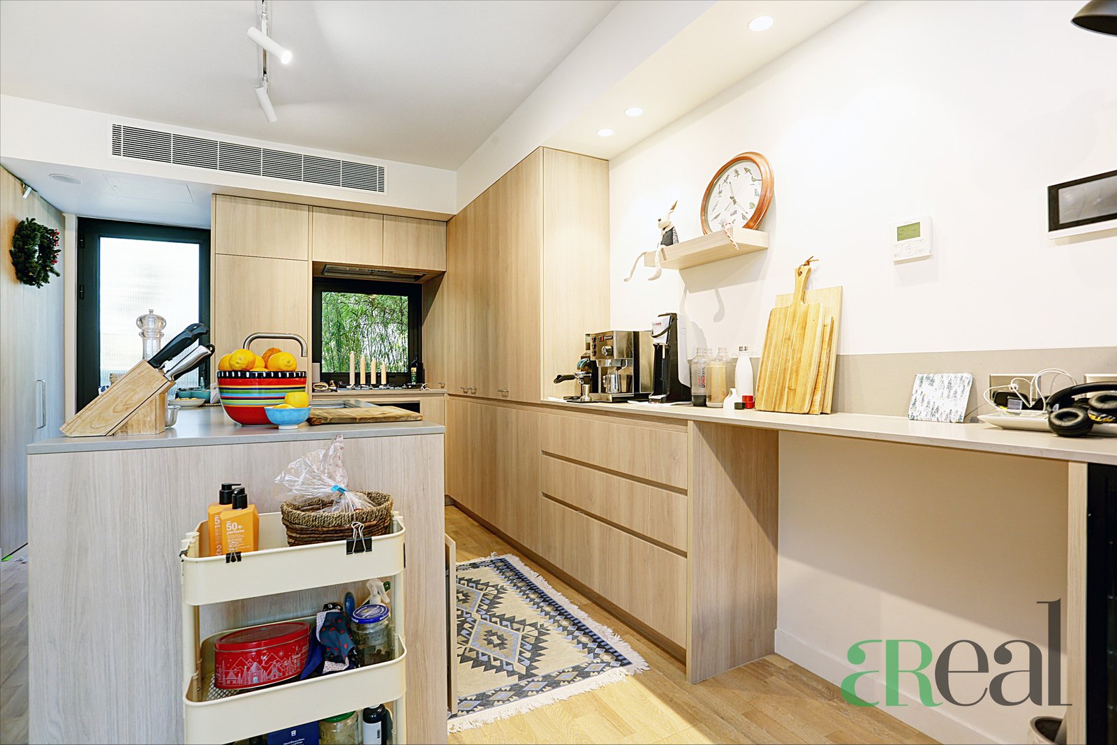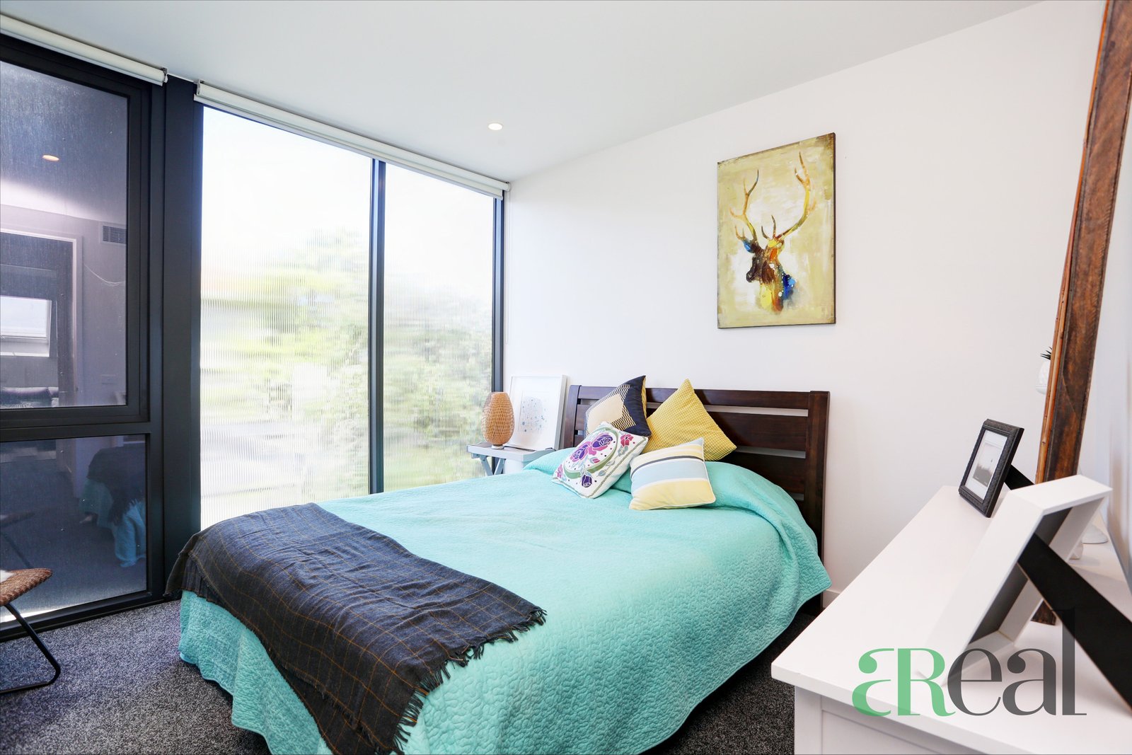 Master bedroom upstairs features built-in robes and tiled ensuite with shower over bath. Modern kitchen (room for a dining table) with gas hotplates and electric oven, huge living room leading to a spacious balcony allowing for a flood of natural light.