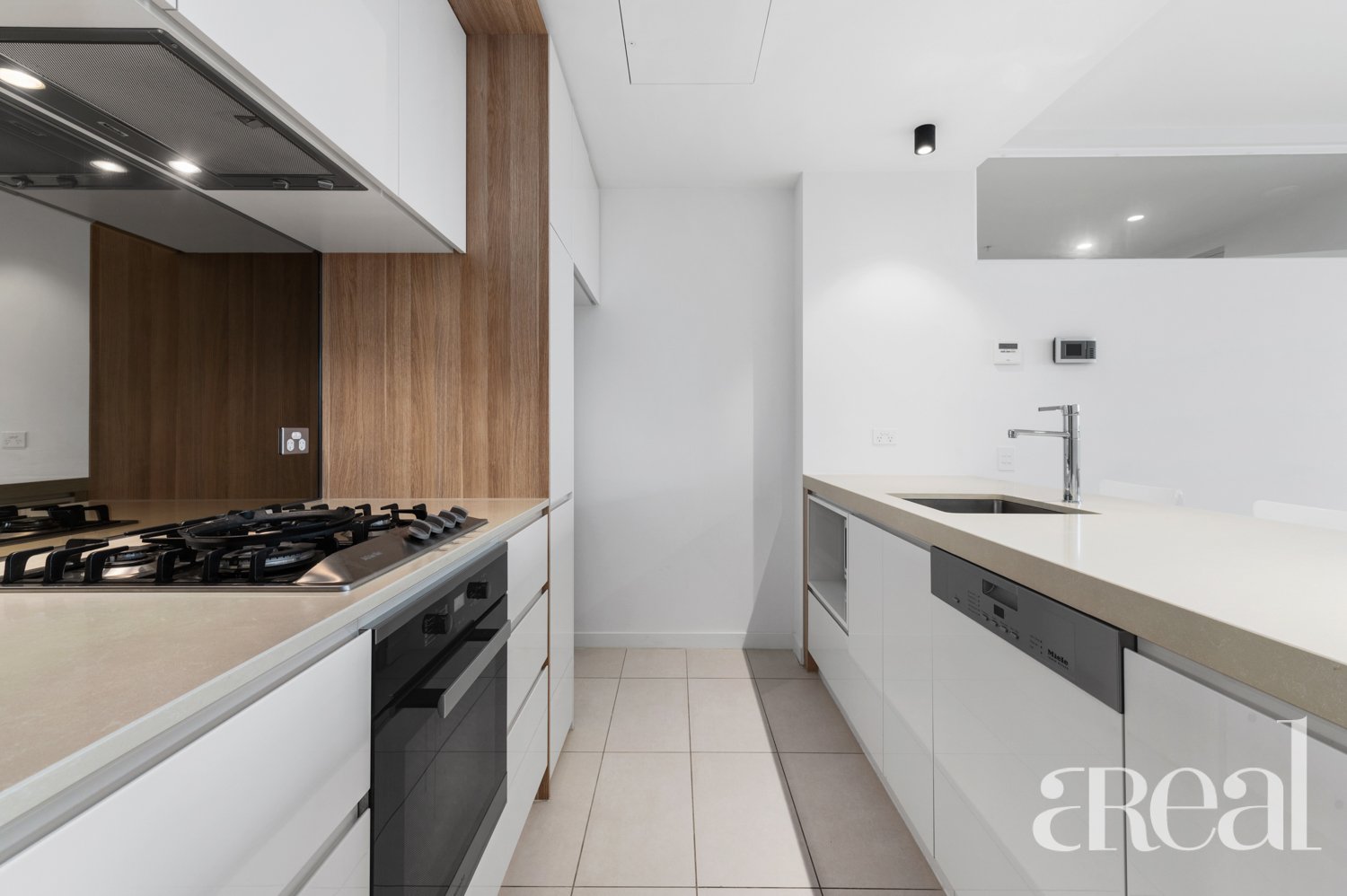 This modern sleek and well designed apartment features two generous sized bedroom with BIRs and one light and fresh bathroom. The comfortable living area features a study nook and sleek kitchen fitted with Miele appliances, glass splashbacks and soft close cabinetry. The open plan interiors, enhanced by full height and width glass doors, are illuminated in natural light and offer effortless flow to the extensive undercover balcony.