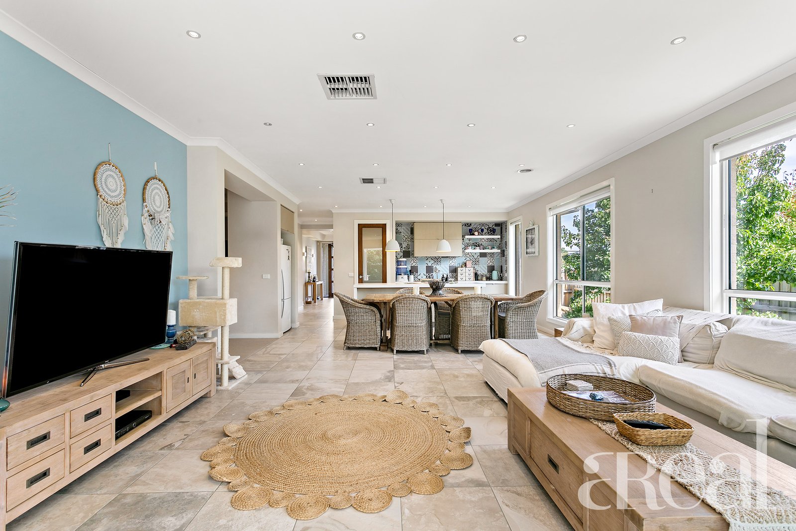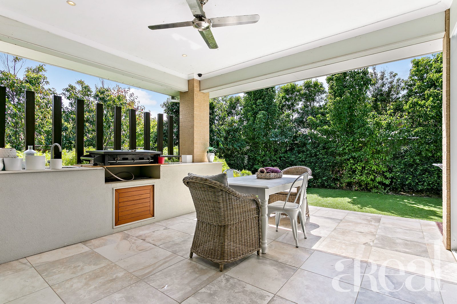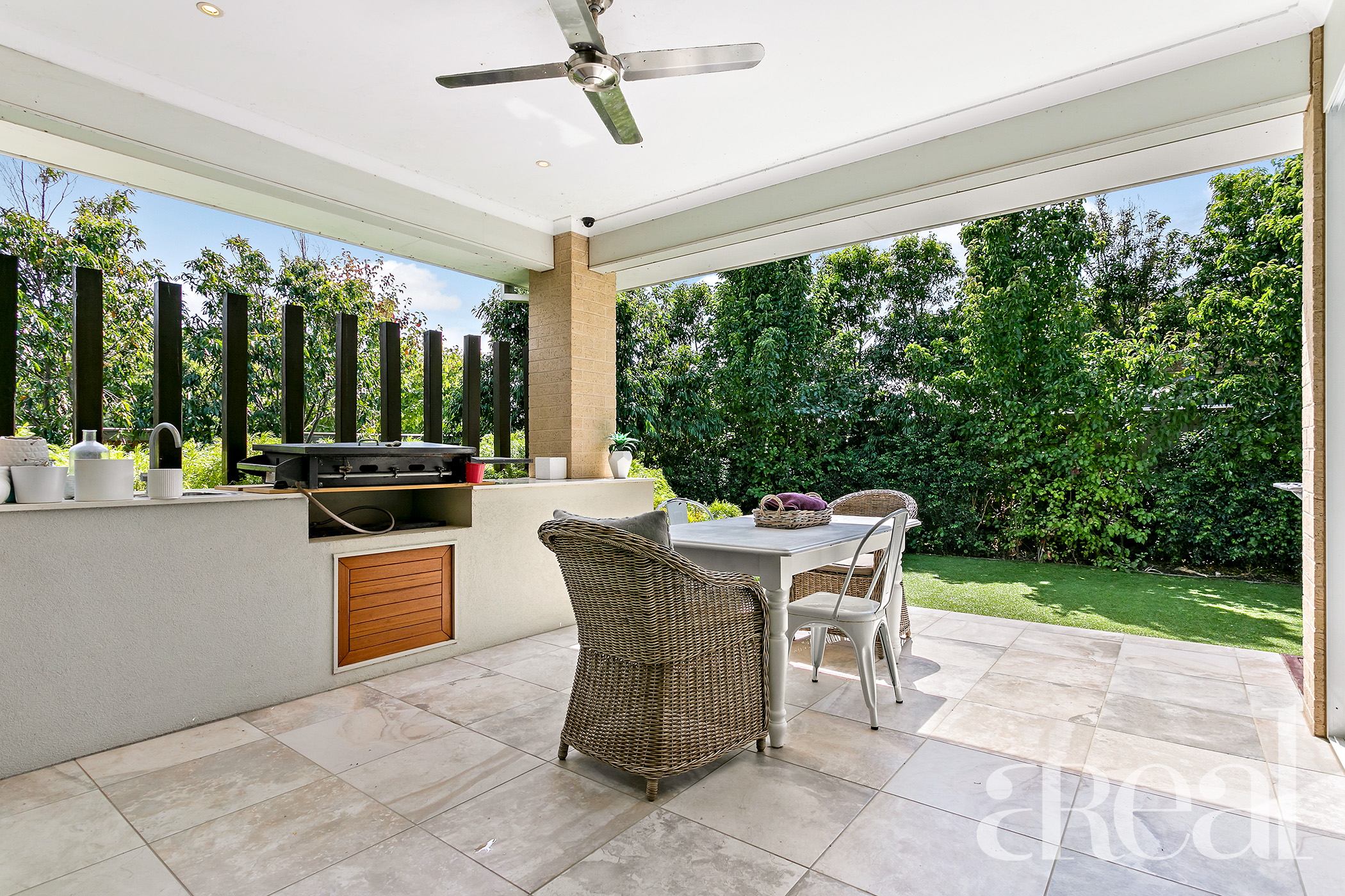 Outside, the lush gardens ensure a leafy outlook and there is plenty of room for kids and pets to run free. A water tank will delight the eco-conscious and there is also ducted air-conditioning and modern downlights throughout.
