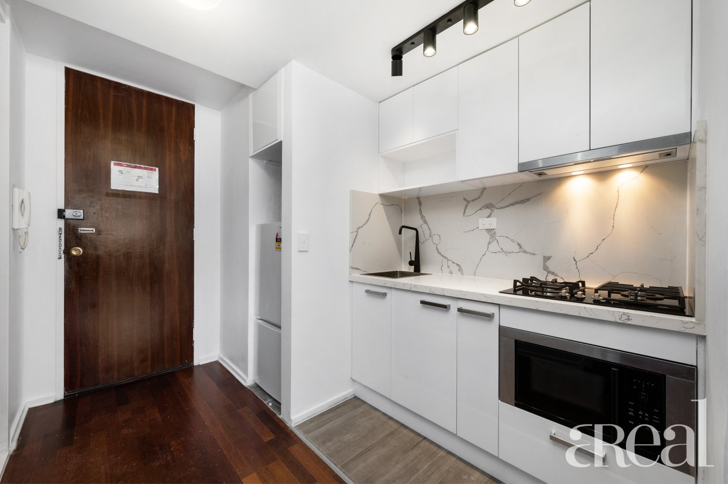- Contemporary kitchen with sleek appliances and fittings;