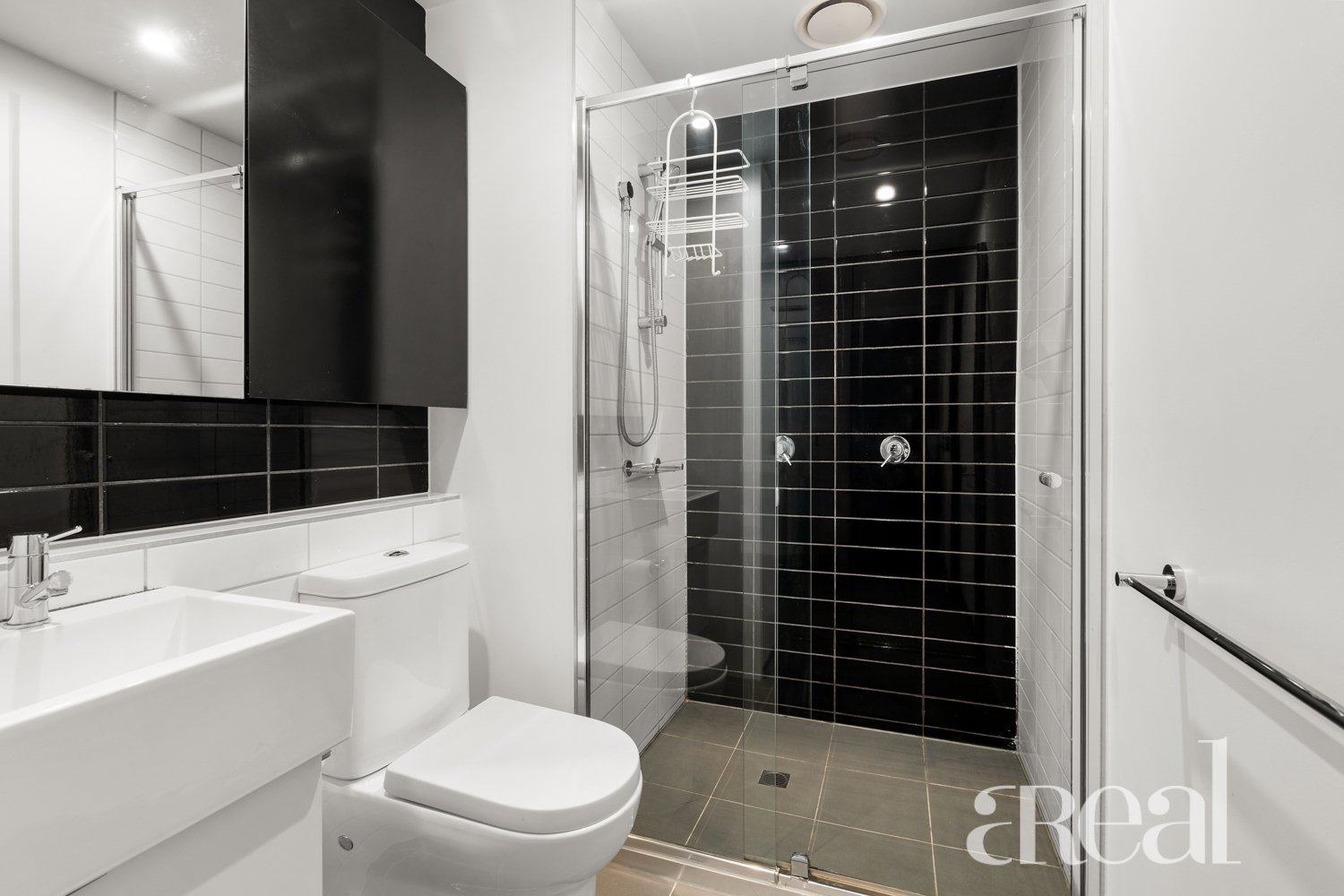- Well-appointed bathroom with a European laundry