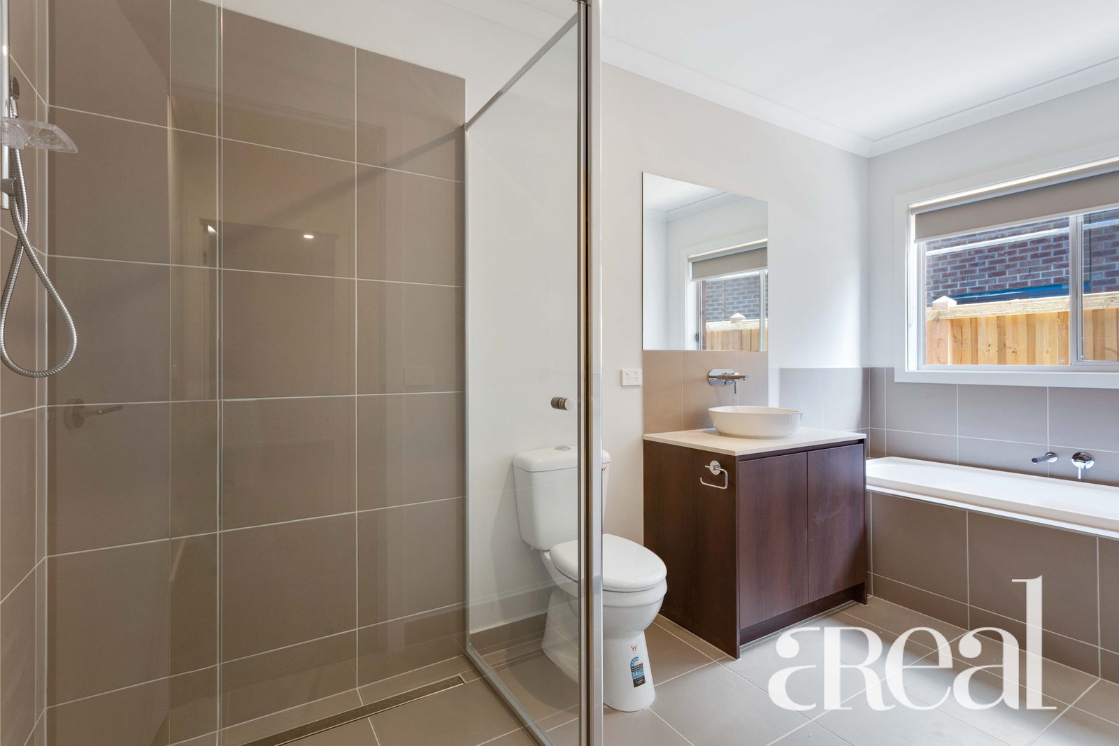- Contemporary main bathroom complete with full length bath tub
