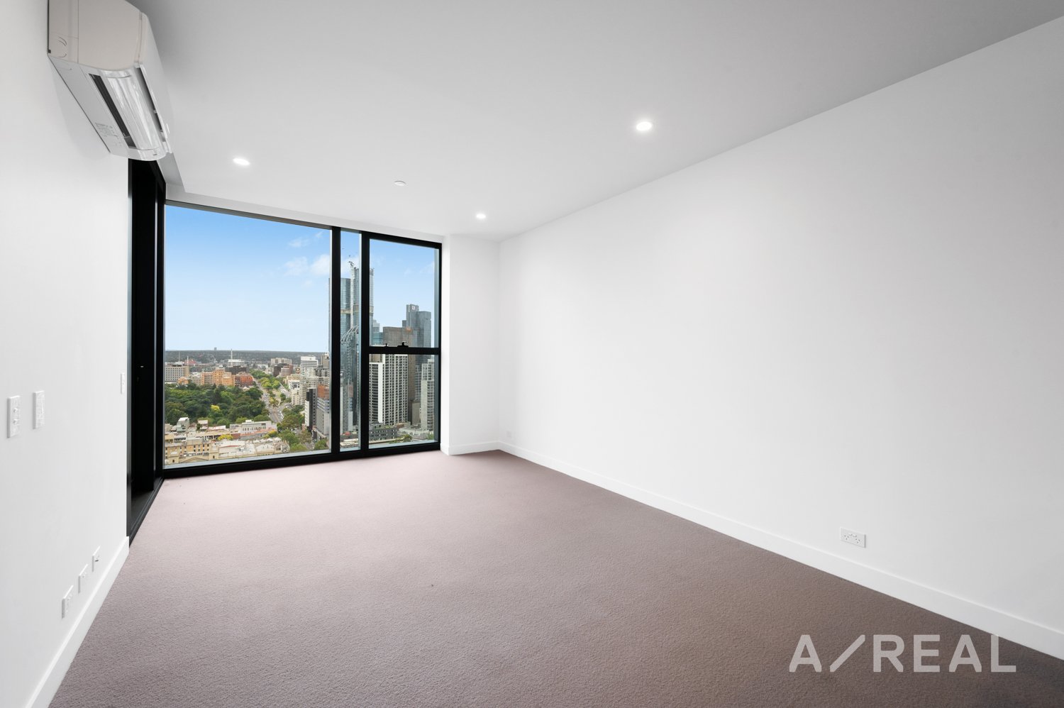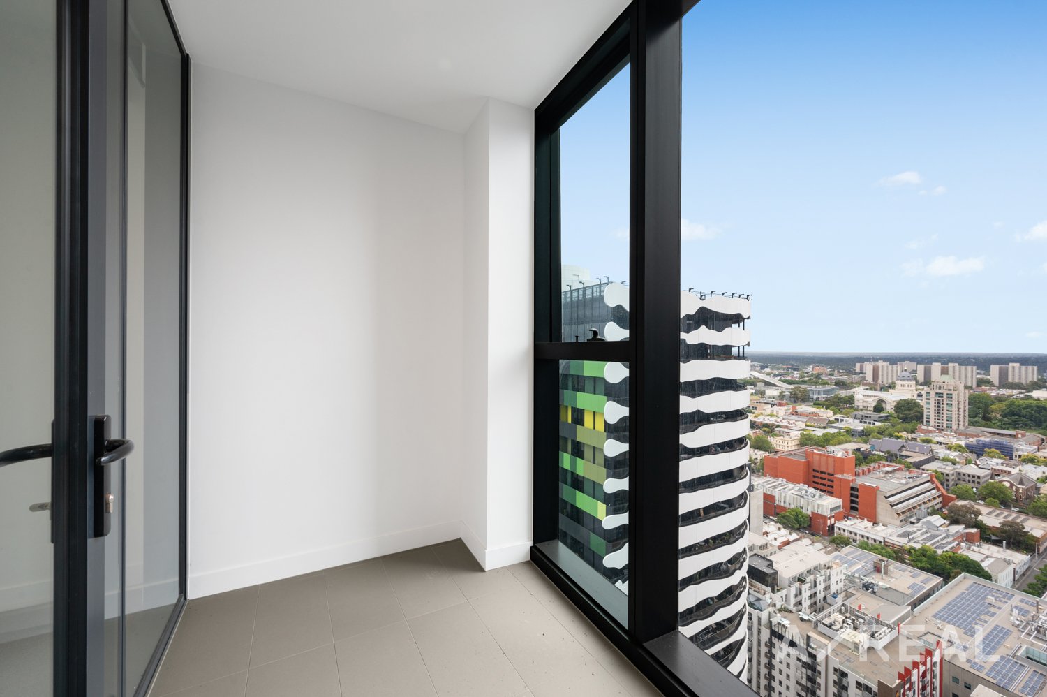 - Air-conditioned living room opens onto a bright balcony with views expanding across the city