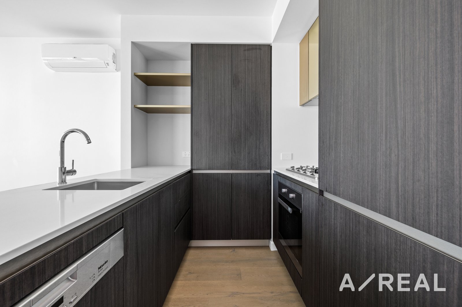 - Contemporary kitchen with sleek appliances and fittings;