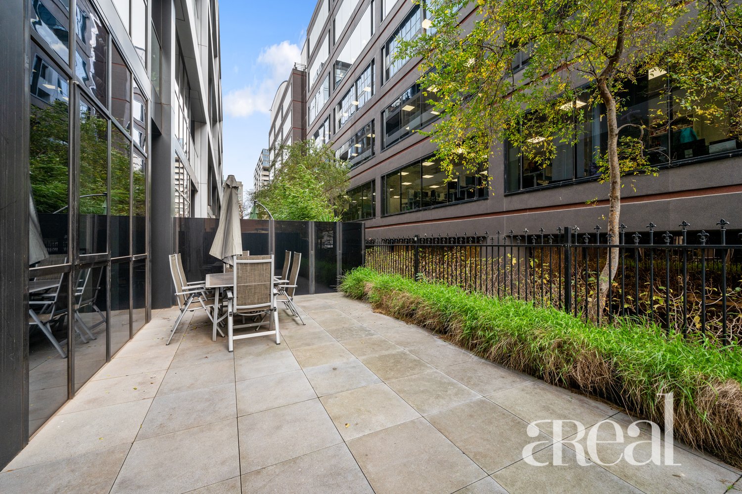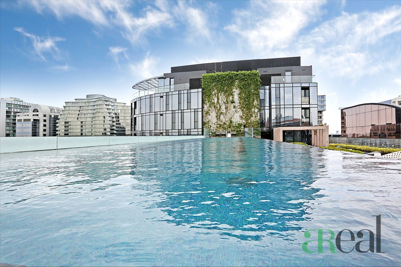 The iconic Parque residential development by renowned architect, Fender Katsalidis, features two impressive towers of faceted glass connected by a landscaped outdoor area.