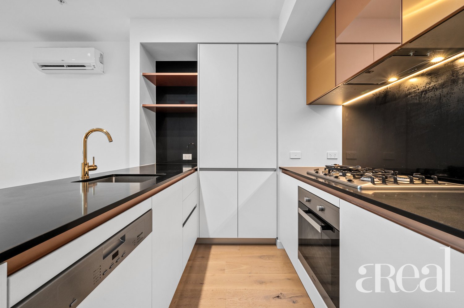 - Contemporary kitchen with sleek appliances and fittings;