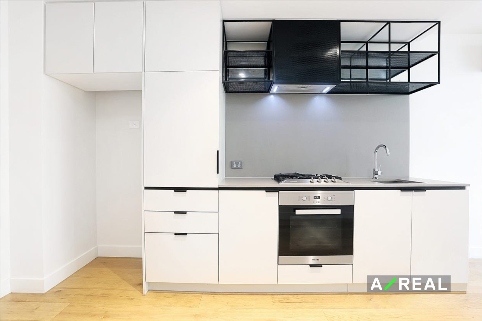 - Oak timber flooring in the kitchen area with gas cooking and dishwasher