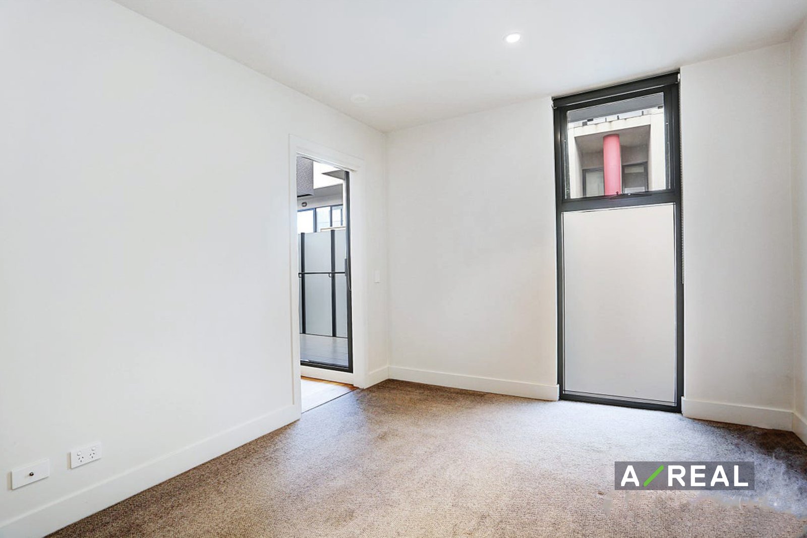 - Living area filled with natural light from floor-to-ceiling glass door