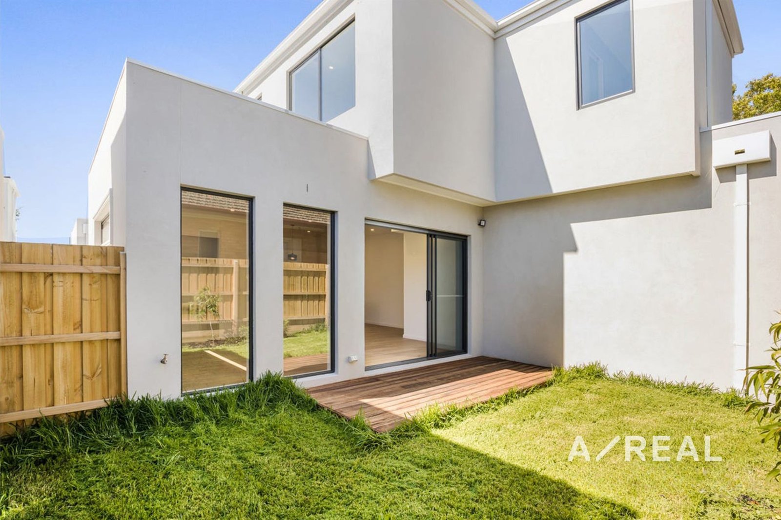 The low-maintenance backyard, and the garage with remote control access ensures secure parking for vehicles.