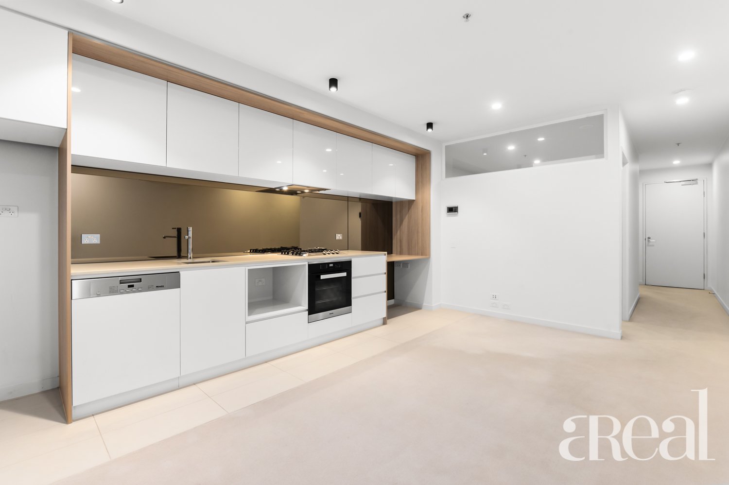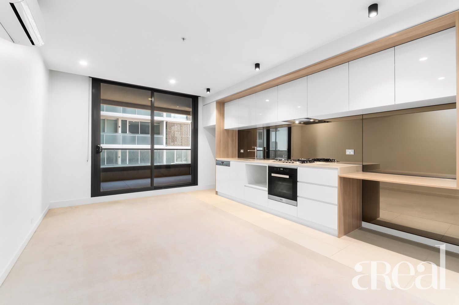 The apartment demonstrates a smart floorplan design providing a serene bedroom equipped with a built-in robe is serviced by an attractive bathroom, additional benefits include a concealed laundry. The open-plan interiors, enhanced by full height and width glass doors, are illuminated in natural light and offer effortless flow to the extensive undercover balcony. The compact kitchen is stylish, excellent use of space with Miele cooking appliances, a dishwasher, and plenty of cupboard spaces with a reverse cycle system of cooling and heating.