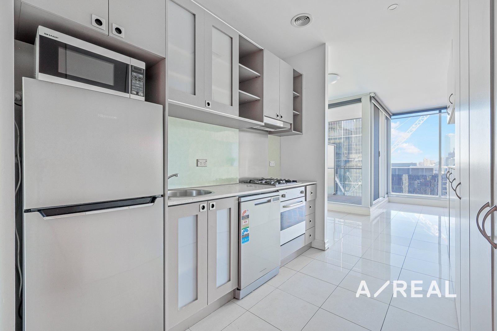 Inside, you’ll love the spacious, light-filled open-plan living area that flows onto a private terrace—ideal for your morning coffee or an evening drink with views of the sparkling city skyline. The sleek kitchen features stainless steel appliances, gas cooking, dishwasher, and generous storage, making it both stylish and practical.