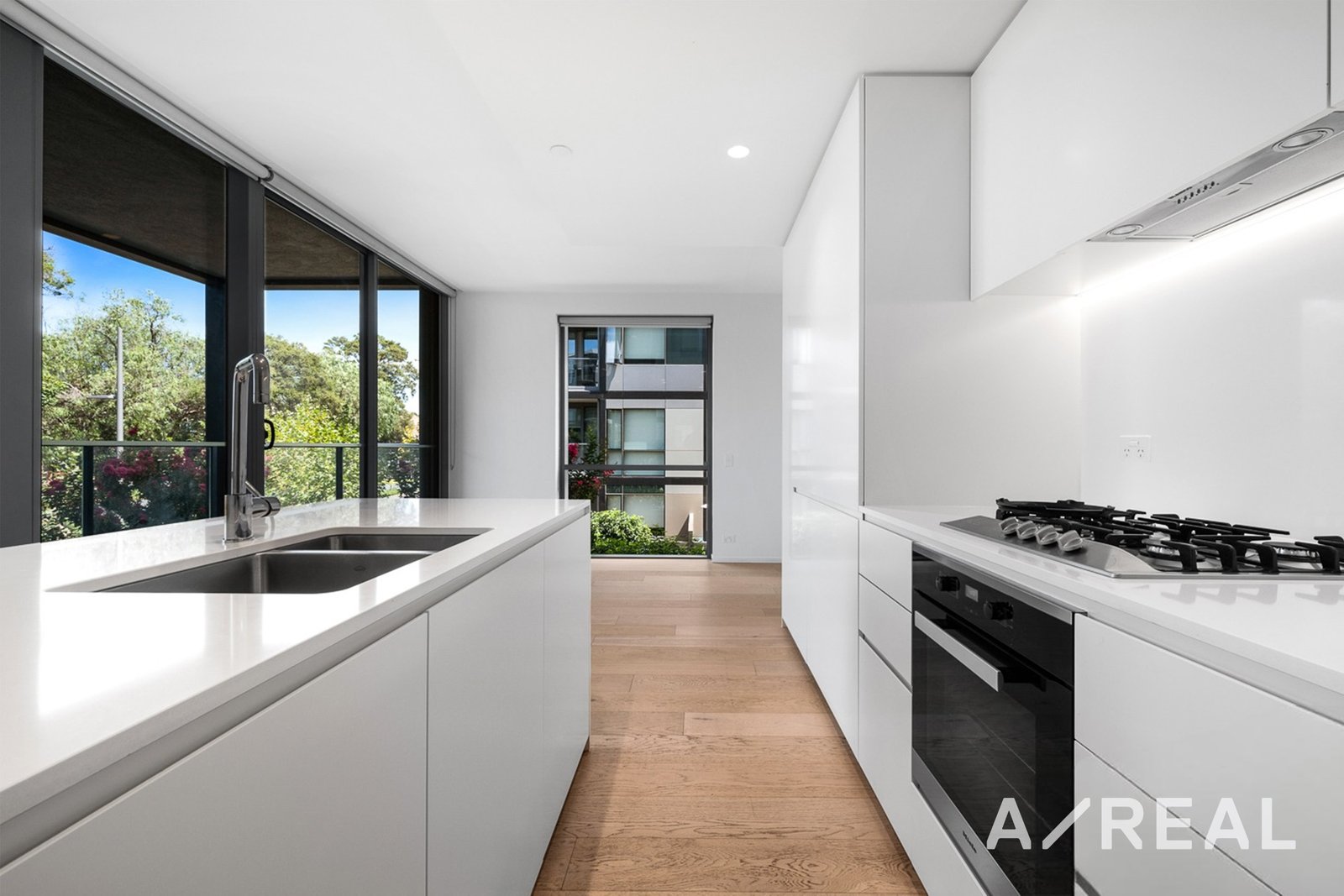 Prepare culinary delights in the impeccably crafted stone kitchen, equipped with ample cupboard space and high-end Miele appliances. Retreat to the generously sized bedrooms featuring built-in robes and sleek, stylish bathrooms. Complete with split system heating/cooling and a convenient laundry cupboard, every aspect exudes luxury and convenience.