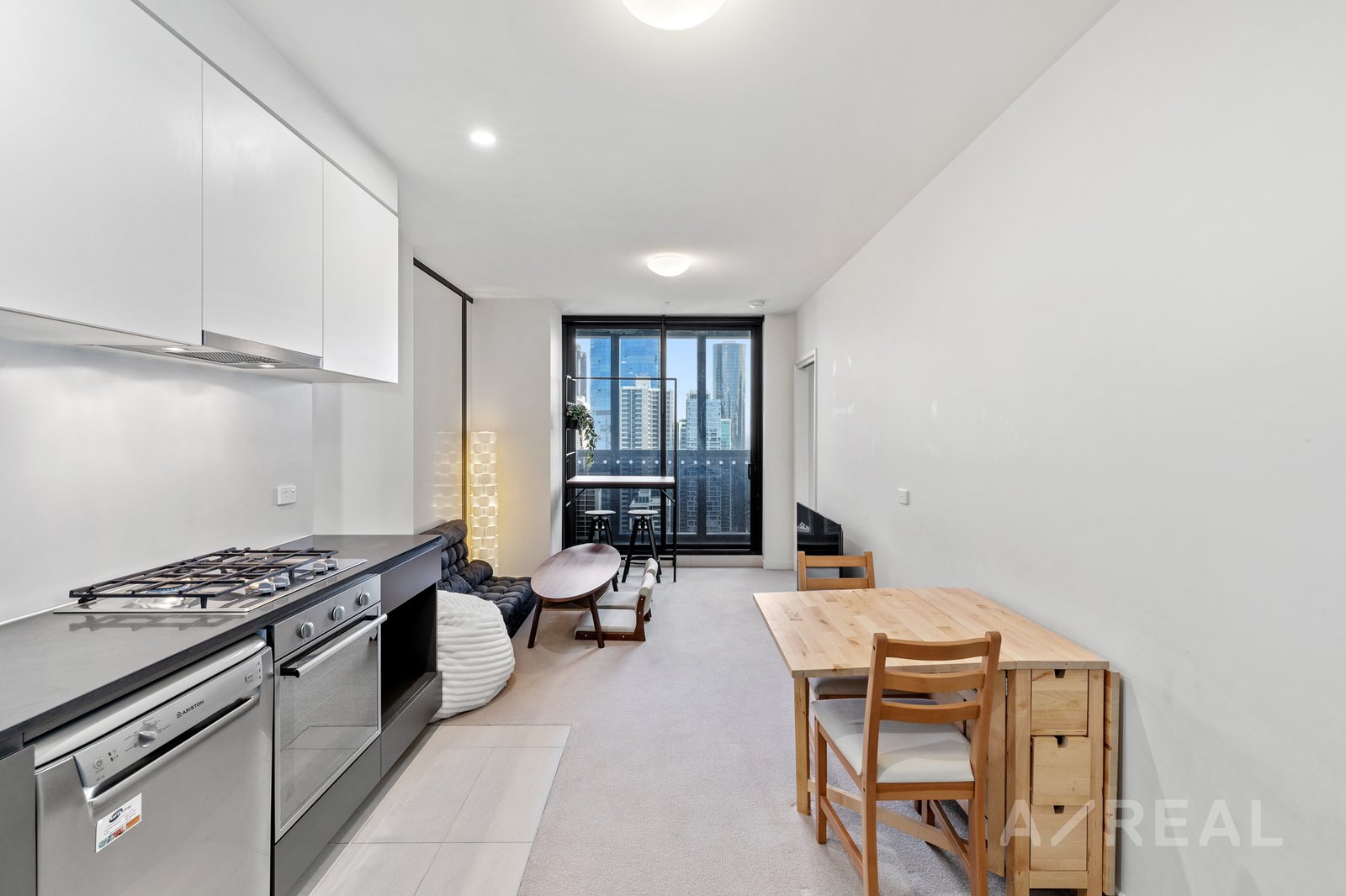 Revel in the epitome of urban luxury at this stunning apartment on Melbourne's iconic Collins Street. Positioned in the heart of the city, it provides an unrivaled living experience with breathtaking panoramic views of the City, Yarra River, and the bay. The interior exudes modern elegance, featuring a well-appointed kitchen with stainless steel appliances, a gas cooktop, oven, and dishwasher. The seamless flow into the living and meals area creates a spacious, stylish ambiance, complemented by a carpeted entry with an intercom system.