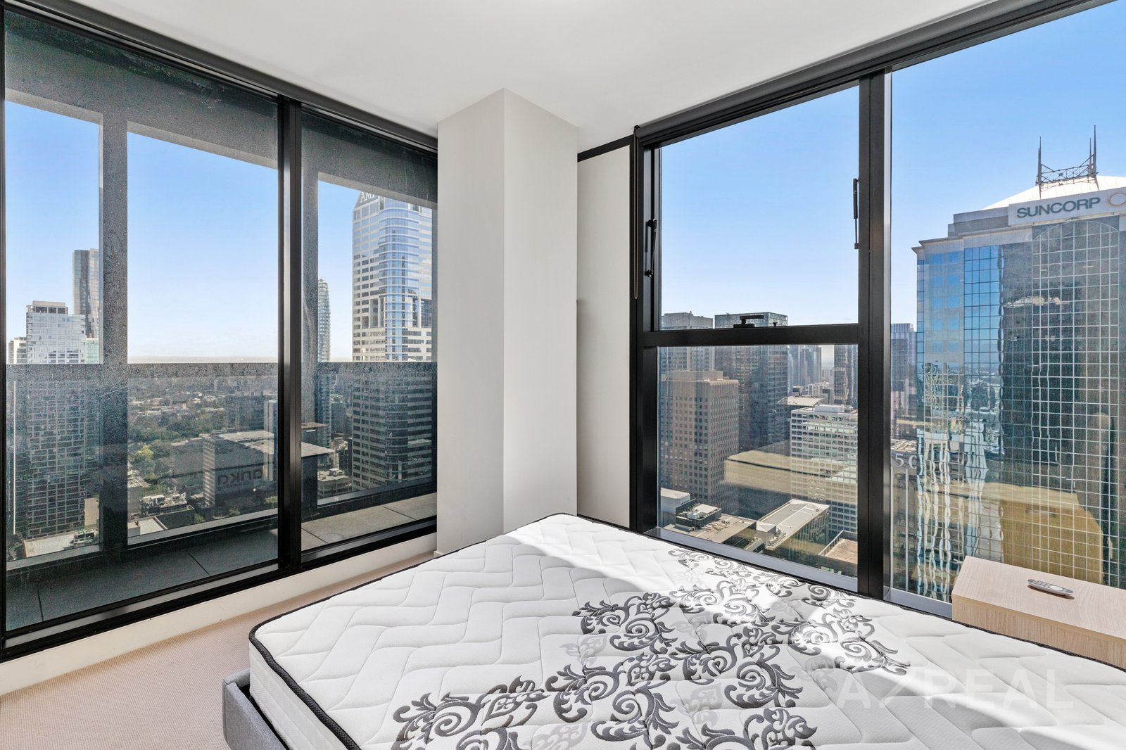 The two bedrooms are adorned with built-in robes, offering ample storage, air conditioning ensures year-round comfort, providing heating and cooling as needed. Beyond the confines of the apartment, residents have exclusive access to a range of amenities, including a 33rd-floor swimming pool with panoramic city views, a spa, sauna, and a well-equipped gym. This residence not only embodies sophistication but also presents an ideal fusion of luxury and convenience in one of Melbourne's most coveted locations.