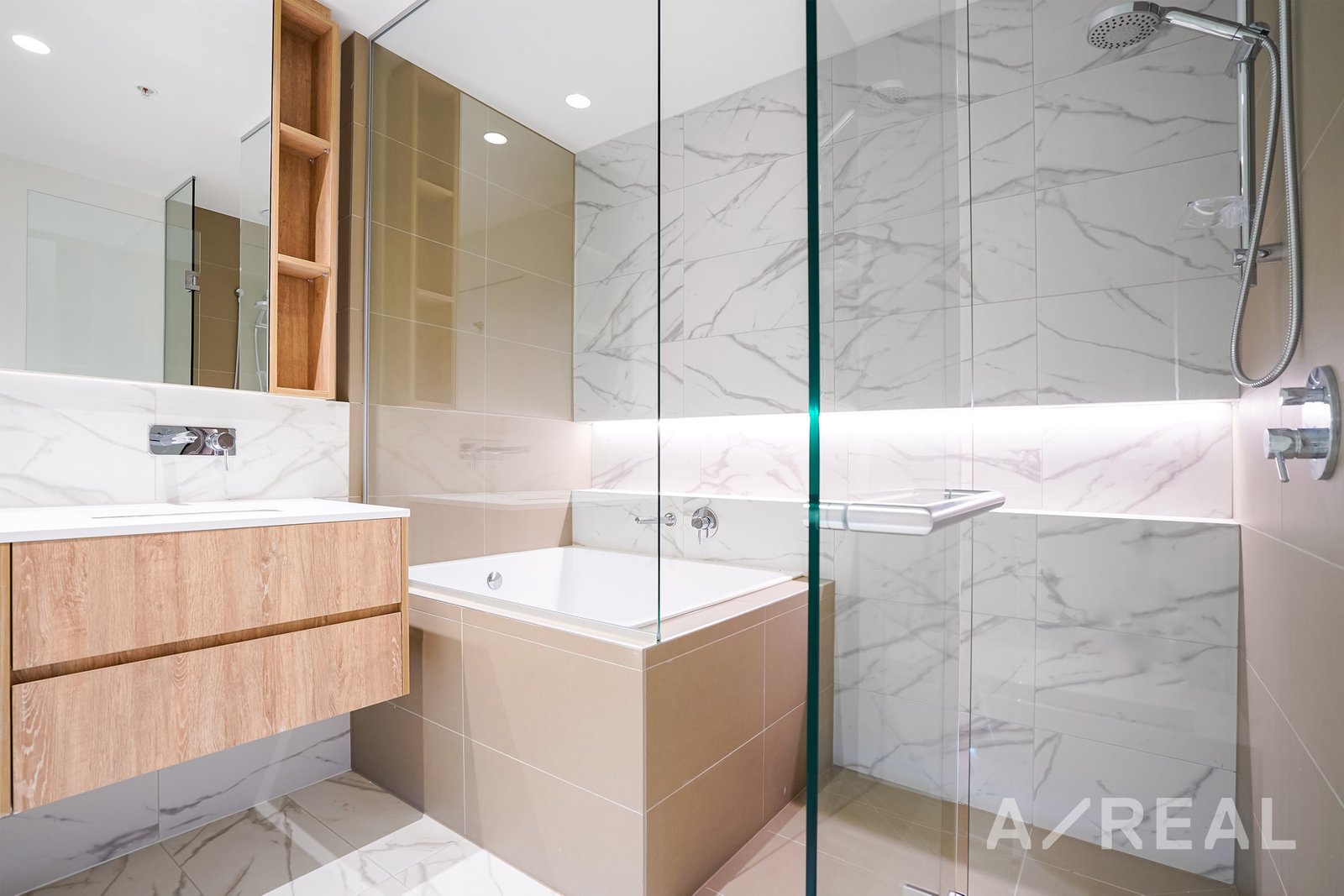 - Quality appointed bathrooms with walk-in-shower and mirrored cabinets above the vanities