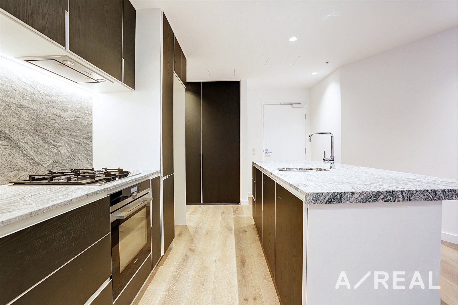 This well-designed two bedrooms apartment with a open-plan living, dining and kitchen area with a private balcony. This apartment is designed with the highest quality interior finishes and fittings such as engineered timber floors, stone kitchen benchtops, stone splashbacks, polished chrome fittings and European appliances.