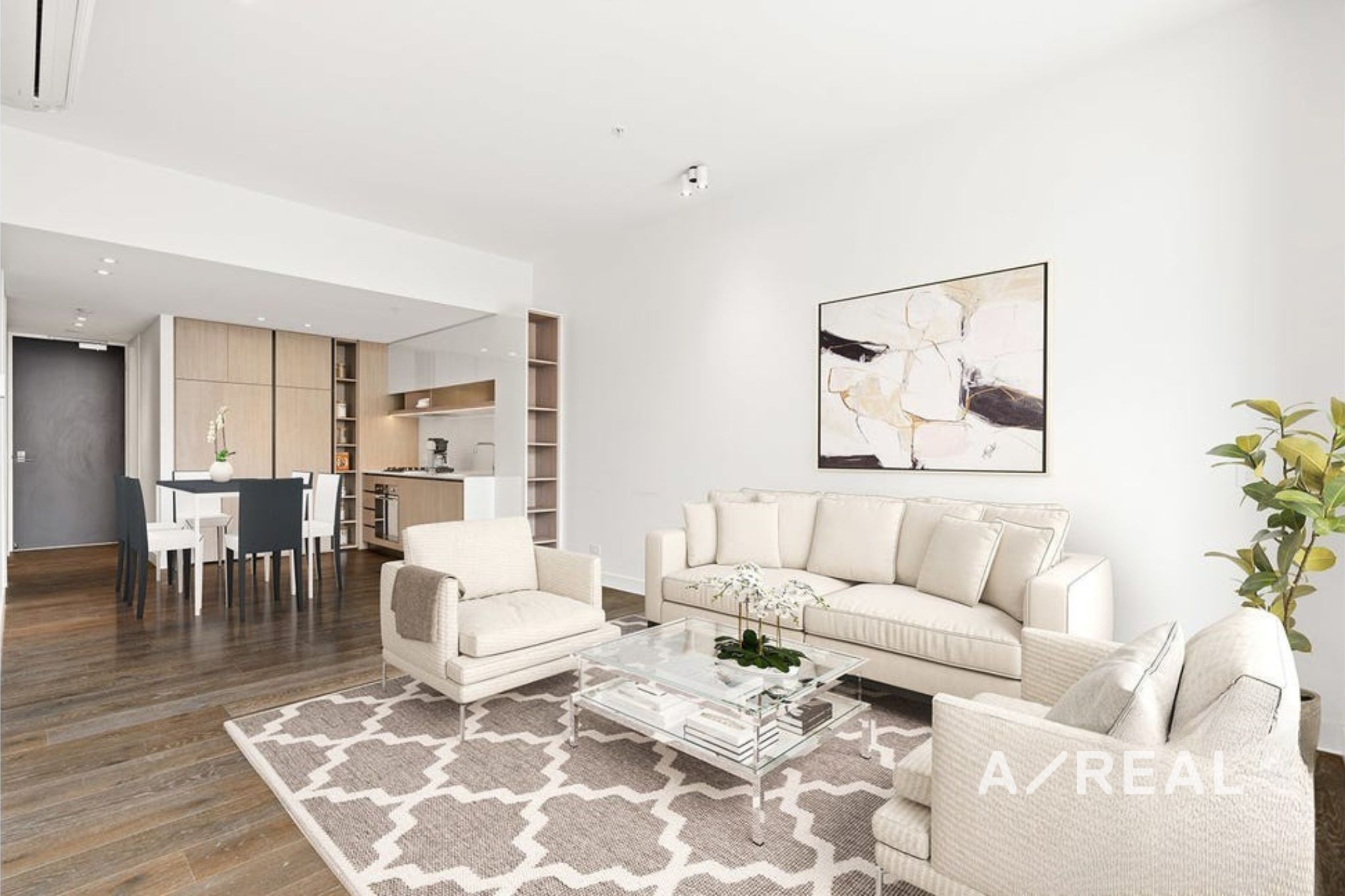 This apartment featuring the wide-plank flooring open kitchen, dining and living room with split system air-conditioning and neutral colour tones. Floor-to-ceiling cabinets, stainless steel appliances and plenty of bench space provided a functional kitchen which delivers inspiring lifestyle.