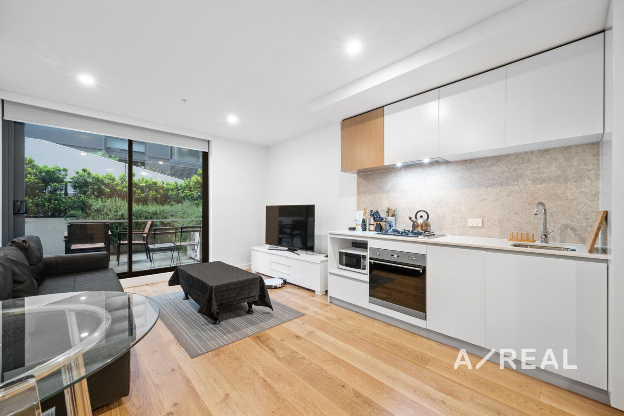 Enjoy roomy open-plan living and dining complemented by a modern kitchen with high-quality Smeg appliances including a full-sized dishwasher, substantial storage as well as a built-in fridge. The bedroom is serviced by a fully tiled bathroom with mirrored cabinetry and a luxe rain shower fitting. A spacious terrace can be accessed from the living space and the bedroom, perfect for indoor-outdoor enjoyment. It also features a multipurpose sitting area which ideal as a study nook. The home is unfurnished but completed with a European laundry, split-system heating and cooling, roller blinds, intercom entry,