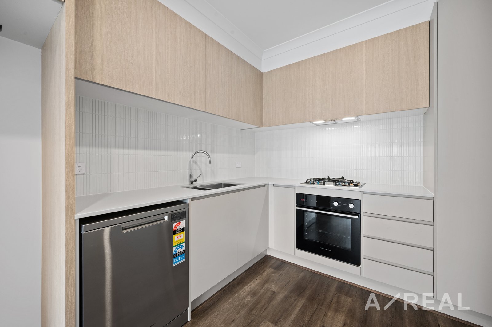 Experience an open-plan living area filled with natural light from tall windows. The chef's dream kitchen boasts a stone benchtop and stainless steel appliances. The master bedroom includes a walk-in robe (WIR) and ensuite, while additional bedrooms feature built-in robes (BIR). A sensational upstairs central bathroom enhances the practicality of the home, with the laundry thoughtfully placed near the entrance and garage. Enjoy direct access to a sunny deck from the living room. Additional features include a split system unit, recessed lighting, laminate wood look flooring, and a remote garage.
