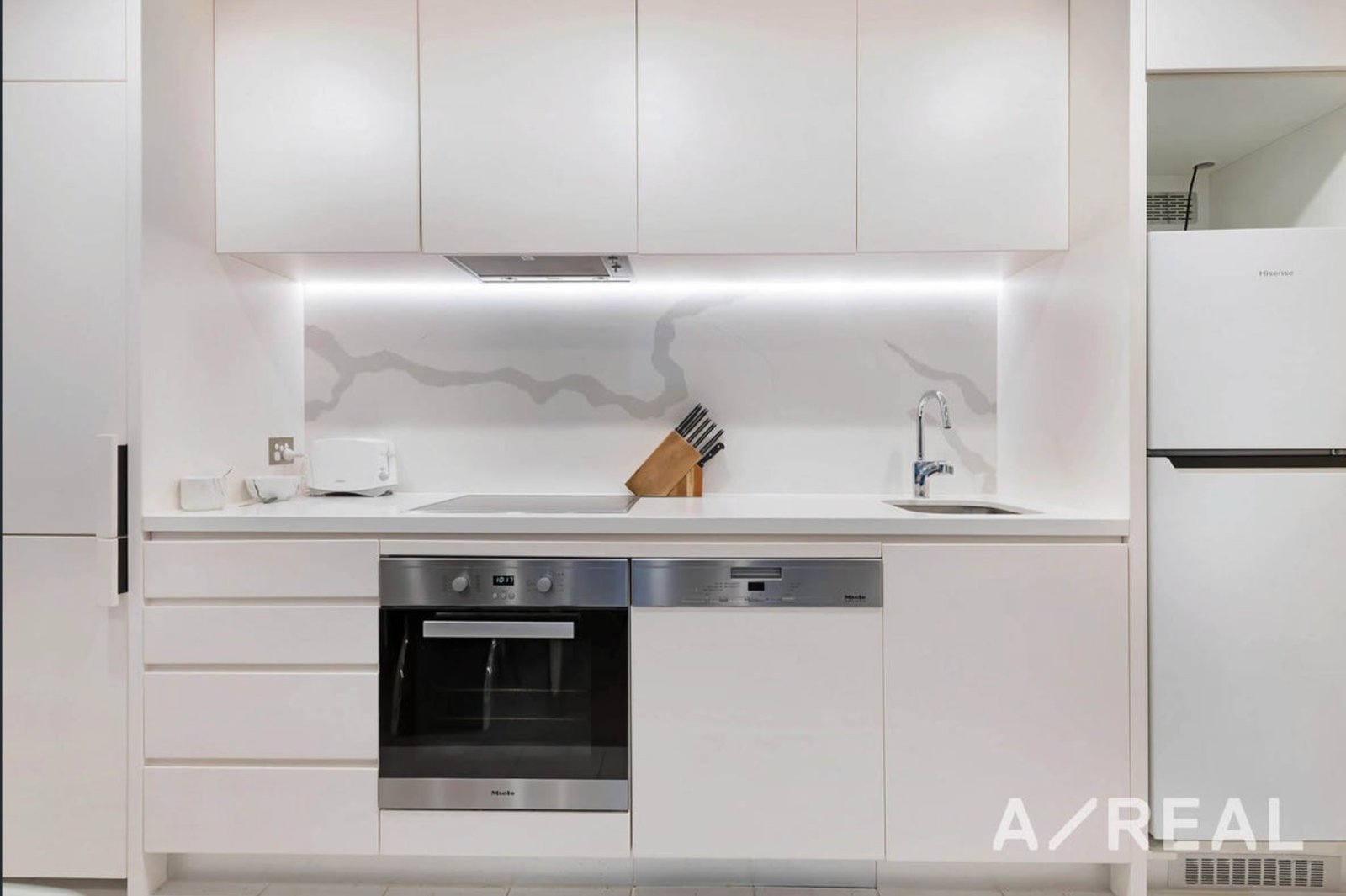 Accommodation includes 2 carpeted bedrooms complete with built in robes, and a carpeted open plan kitchen/dining/lounge which opens on to the balcony - perfect for alfresco dining. The tiled bathroom, central European laundry and study space complete the dwelling. The kitchen offers stone benches, feature splashback and lighting and stainless steel Miele appliances.