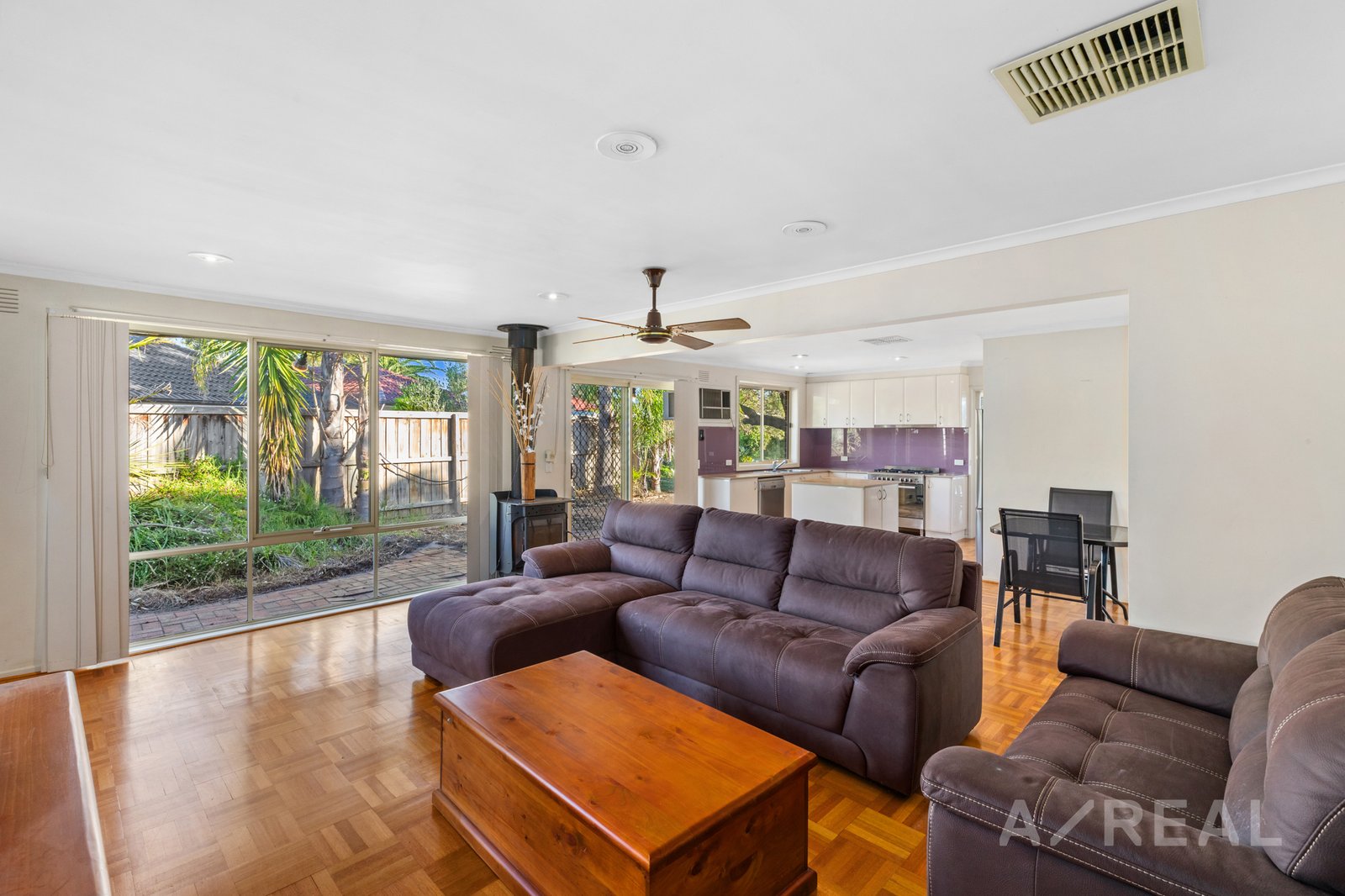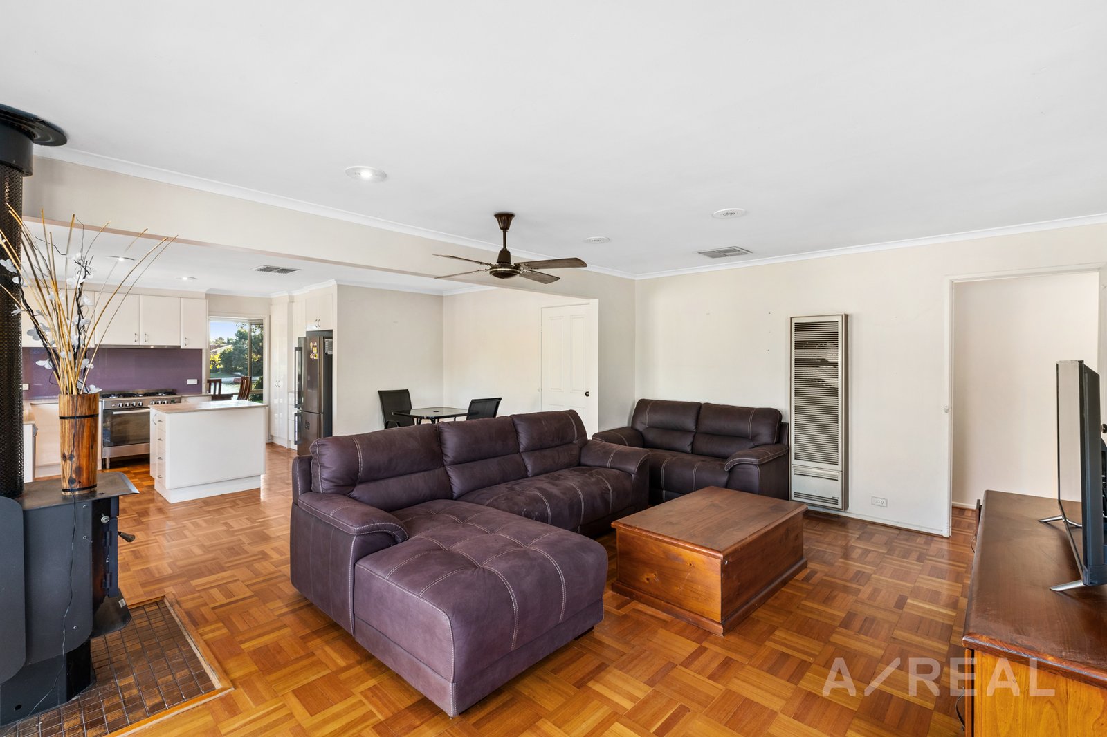 The master suite offers a touch of luxury with its refurbished ensuite and convenient built-in robes. The heart of the home centers around an updated kitchen equipped with a welcoming breakfast bar, seamlessly flowing into a spacious family room.
