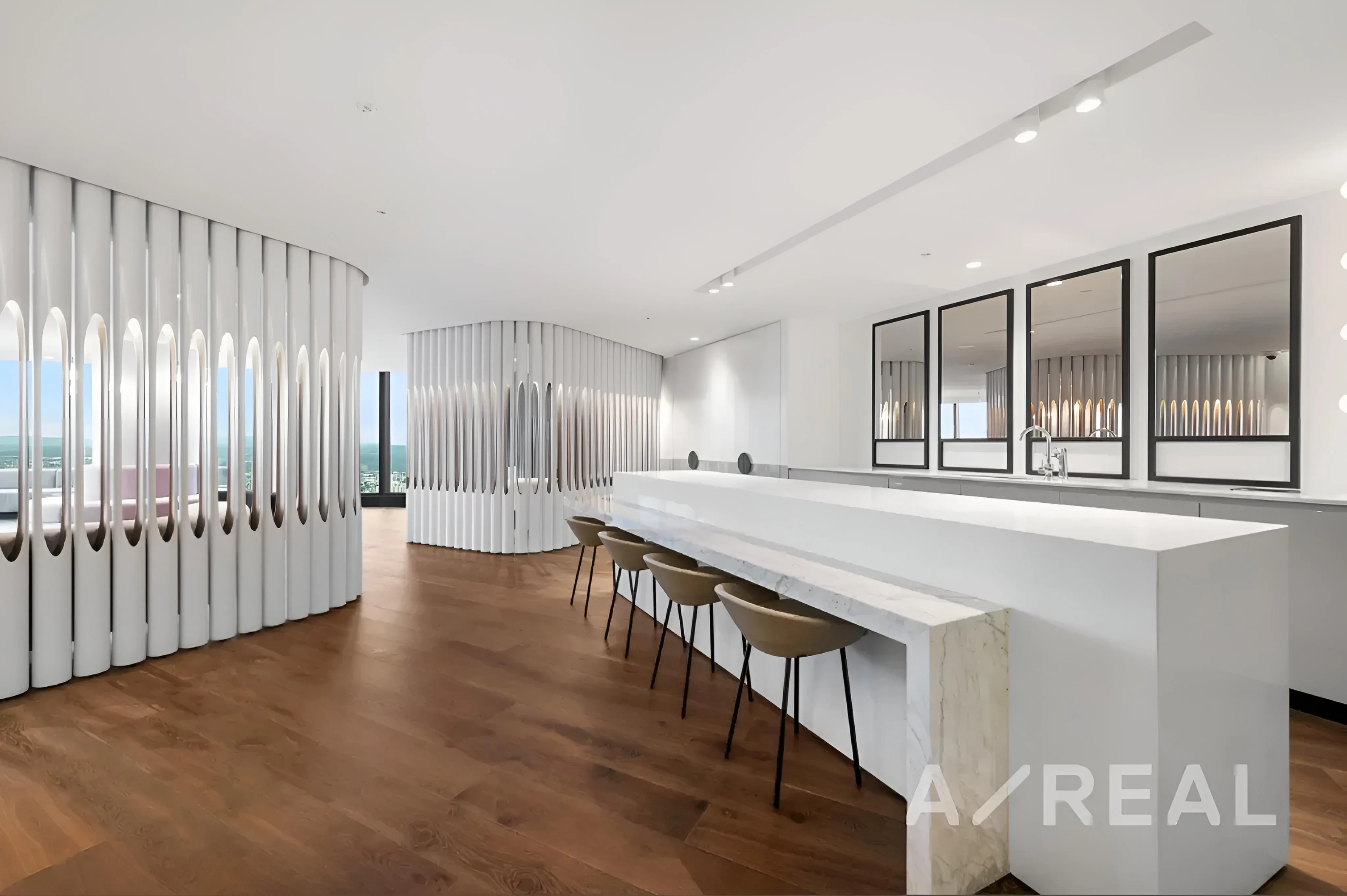 This self-contained vertical community caters comprehensively to the desires and needs of its inhabitants. Among its world-class facilities are a private cinema, a karaoke room, and a fully equipped gymnasium. It also features themed dining and lounge rooms, a sauna and steam room, a 25-meter indoor lap pool, and a reading lounge. The inclusion of a plunge pool, an outdoor Jacuzzi, an expansive outdoor dining and BBQ area, a sundeck, a yoga zone, a dance barre, and a high tea room further exemplifies the luxurious and thoughtful amenities designed to enhance the lifestyles of its residents.