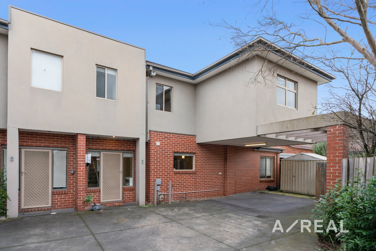 - Two car carport/off-street parking, together with storage shed