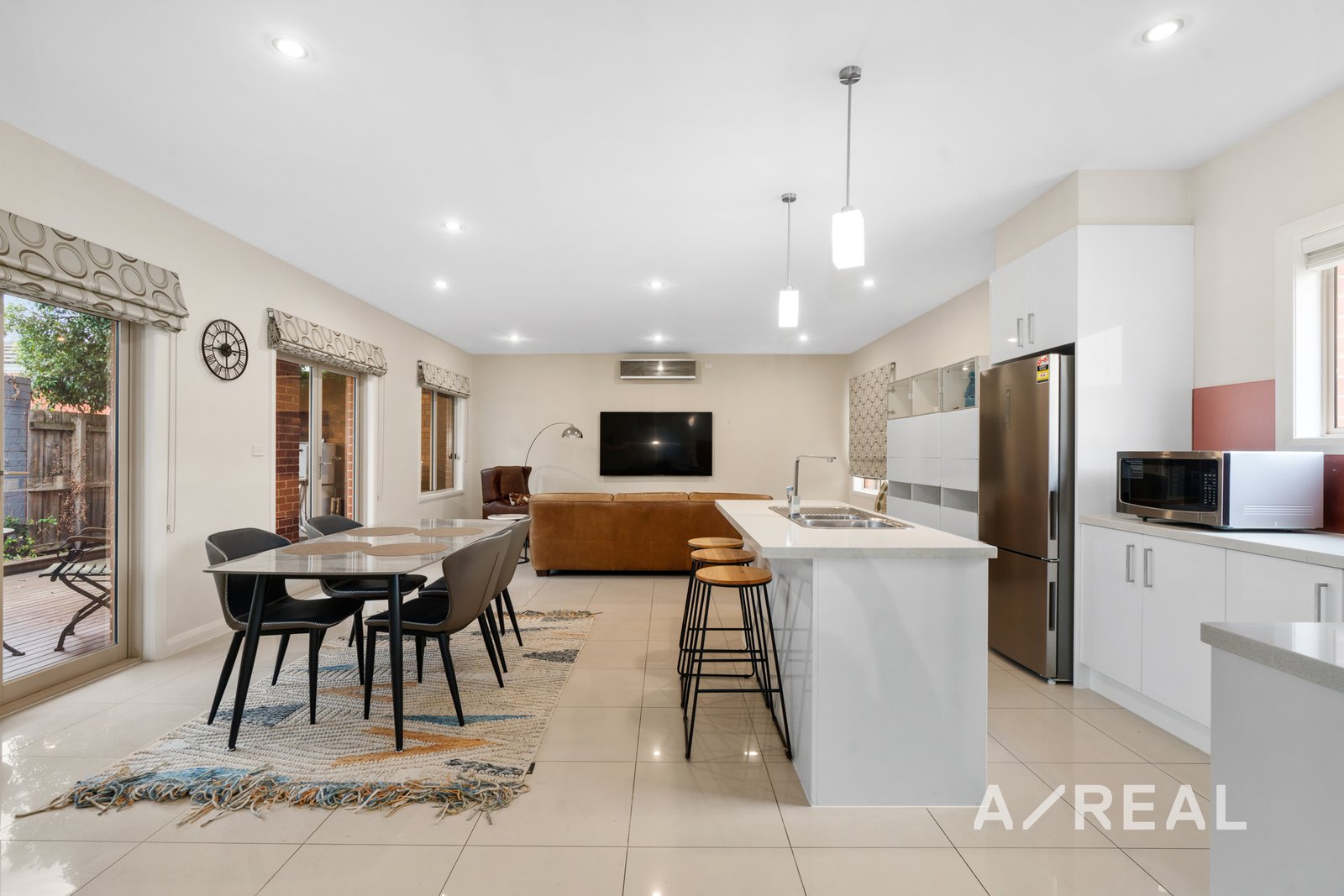 - Downstairs: Sleek and sophisticated with a designer edge, featuring a natural-lit filled open plan lounge with reverse cycle heating and cooling.