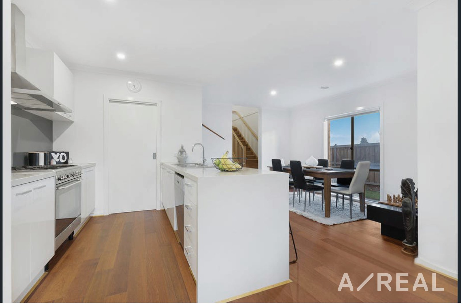 On the entry level is an extensive dining room which leads to the spacious living room that leads out to the alfresco area. Upstairs are the lavishly decorated bedrooms with built-in robes and an open rumpus area awash with natural light from the wide angled windows. Beyond the glass, outside a garden of eden, perfect for entertaining guests at a summer cookout.