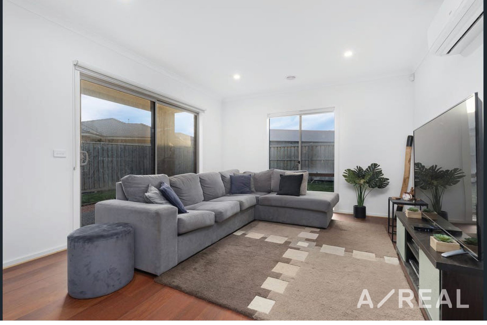 Light-filled living area with access through the glass sliding door to the yard, perfect for entertaining guests at a summer cookout.
