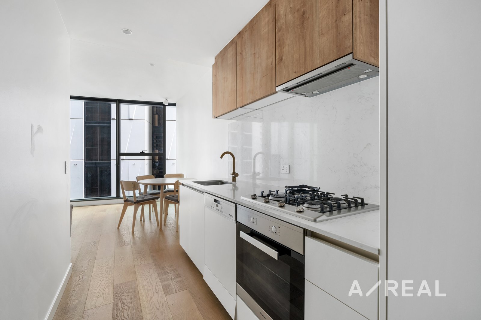 The apartment is cozy offering a generous sized bedrooms with light-filled interiors featuring floor to ceiling windows, spacious layout, and BIRs. European stylized kitchen with Miele appliance, with floors board and glass panels, make this apartment light and inspirational giving it a sense of space. Features include a sleek bathroom with elegant tapware and marble splashback.