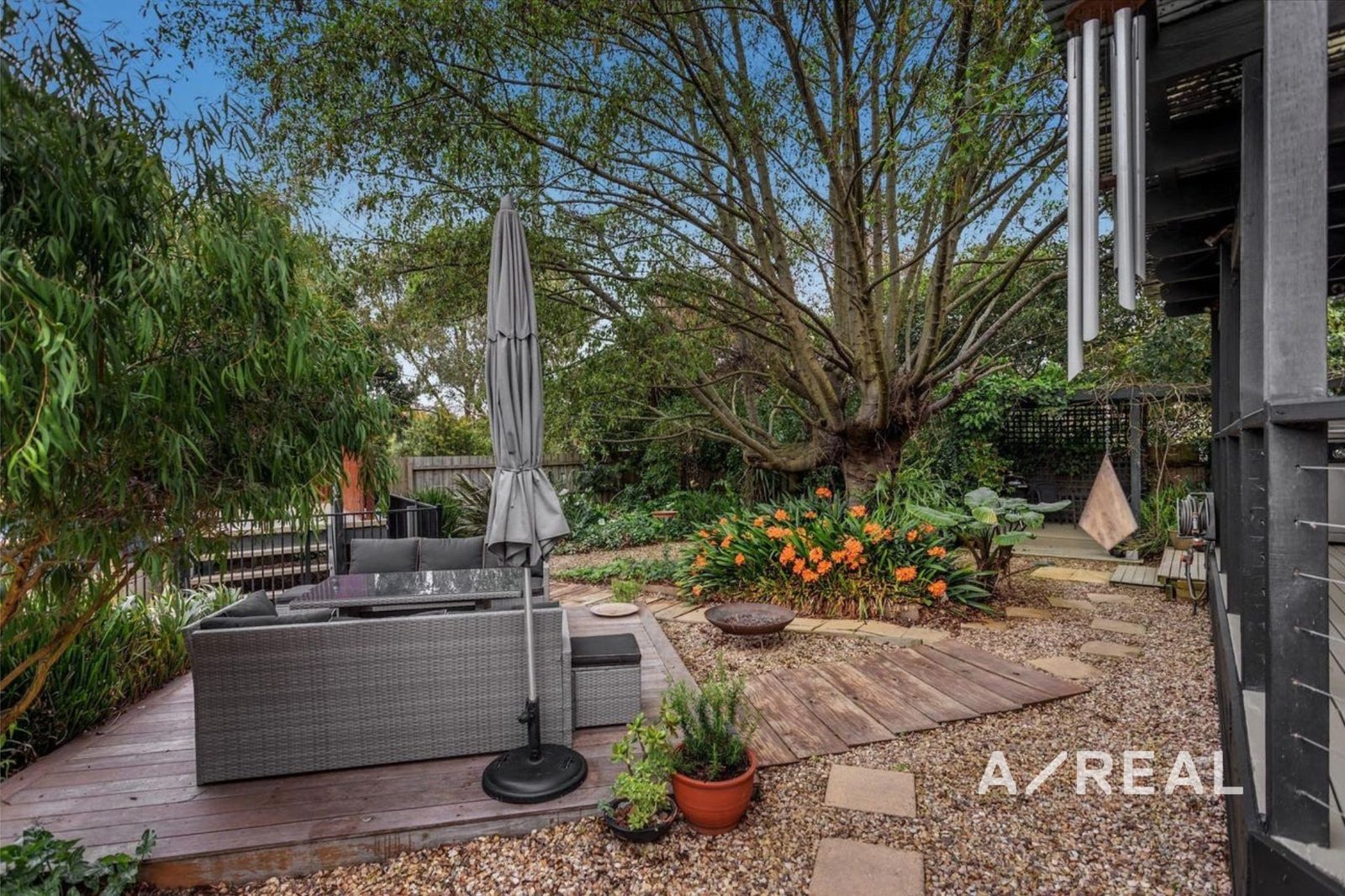Step outside to a large, secure backyard that’s ideal for children, pets, or simply enjoying the outdoors. A covered patio area extends the living space and provides the perfect spot for alfresco dining or weekend barbecues, all set against the backdrop of low-maintenance gardens.