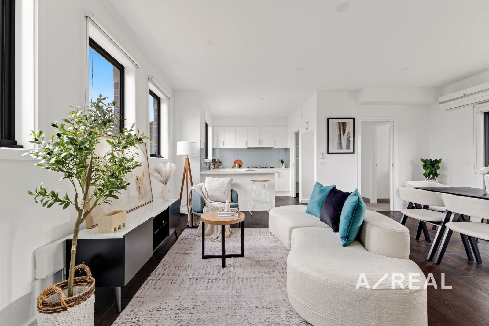 Timber floors and beautiful natural light fill the open-plan living/dining environment, served by a modern kitchen featuring stone surfaces, walk-in pantry and quality stainless steel appliances.