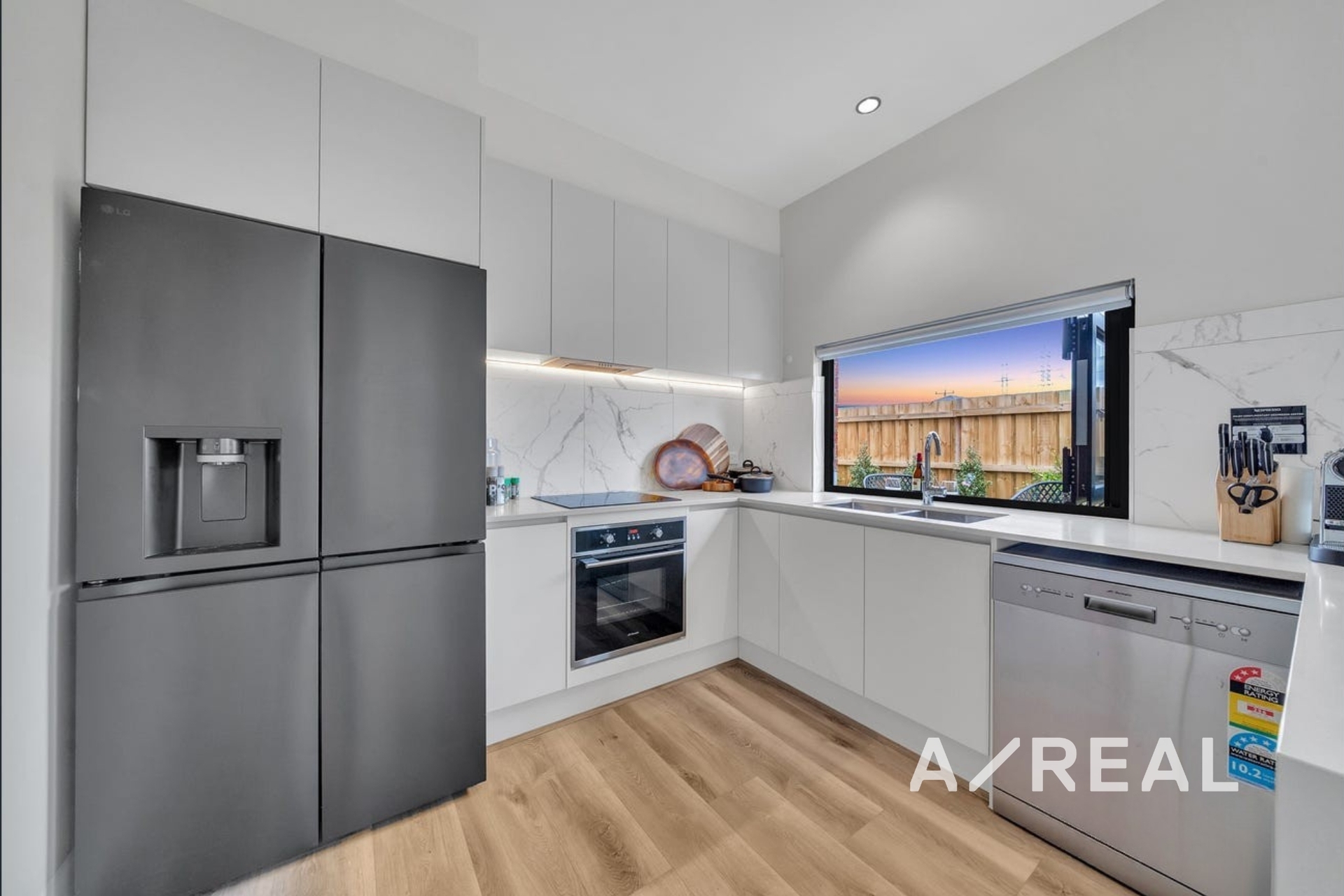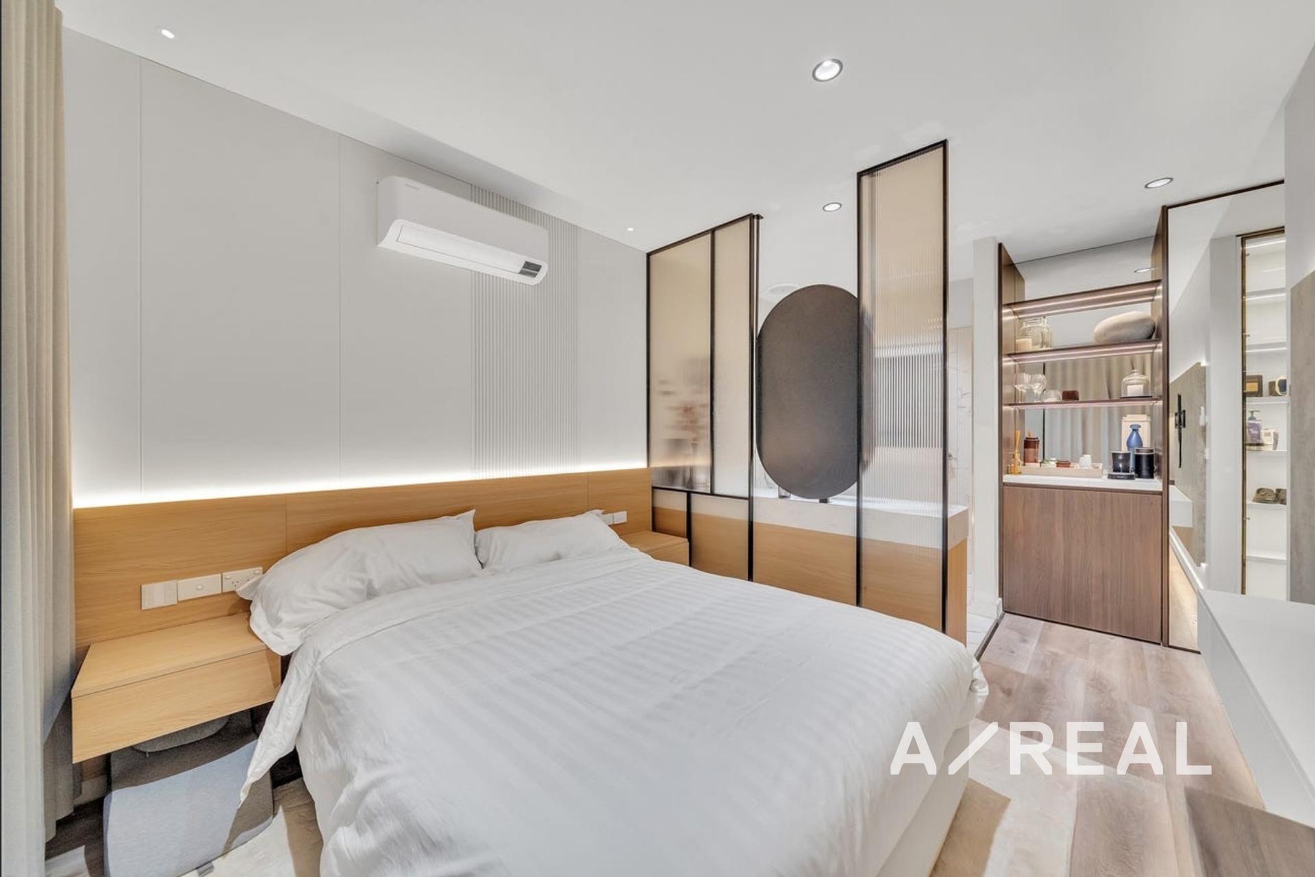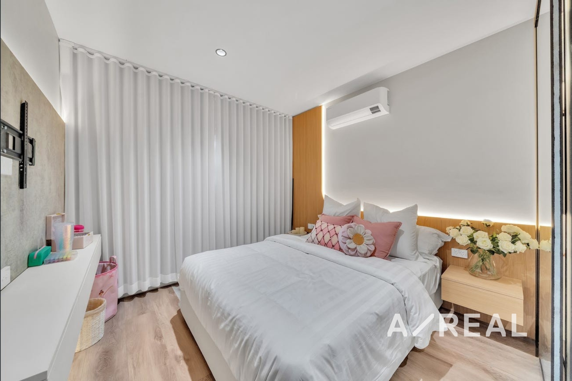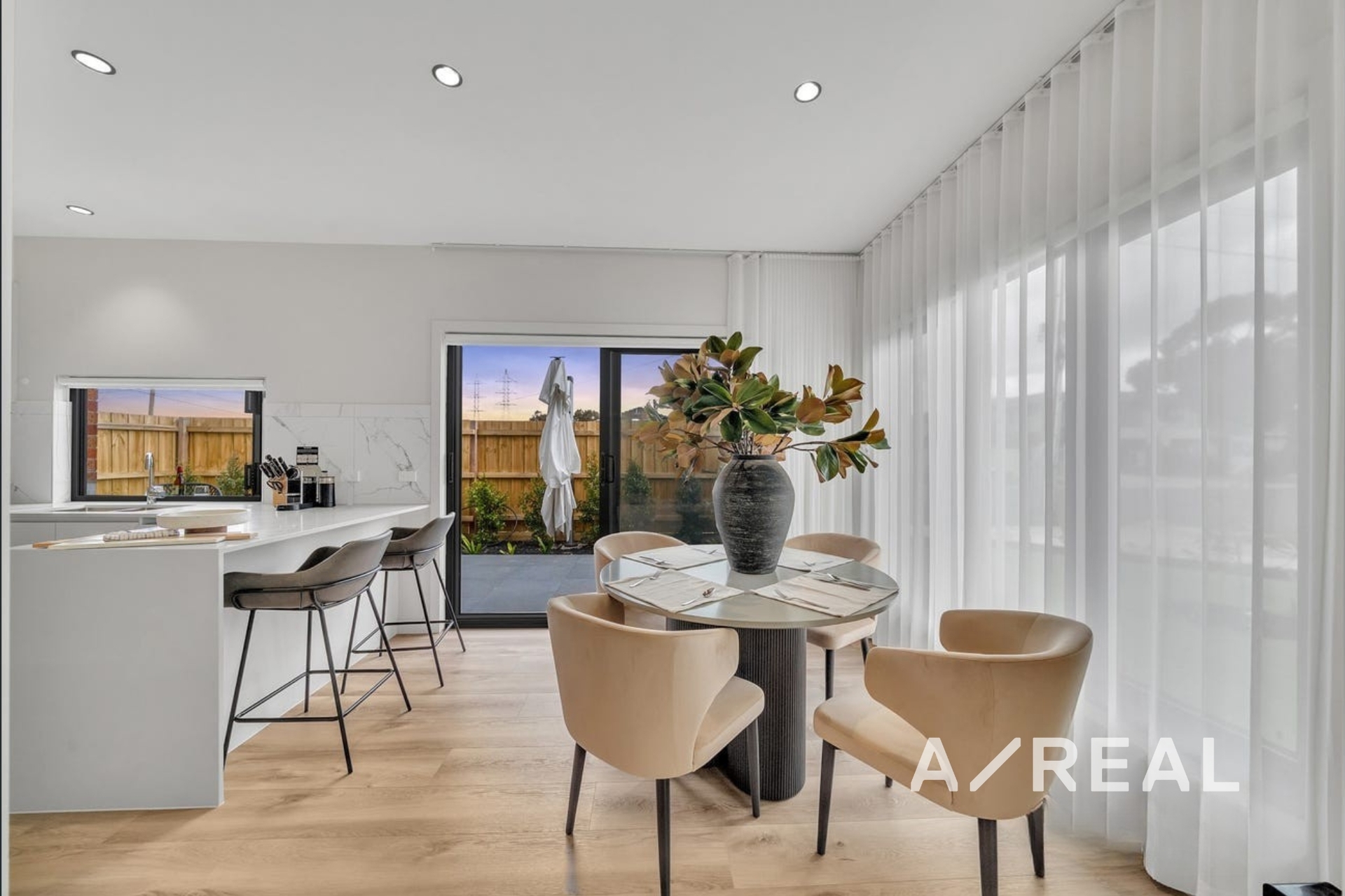Premium finishes throughout, including double-glazed windows and doors, motorised curtains, and durable hybrid flooring.