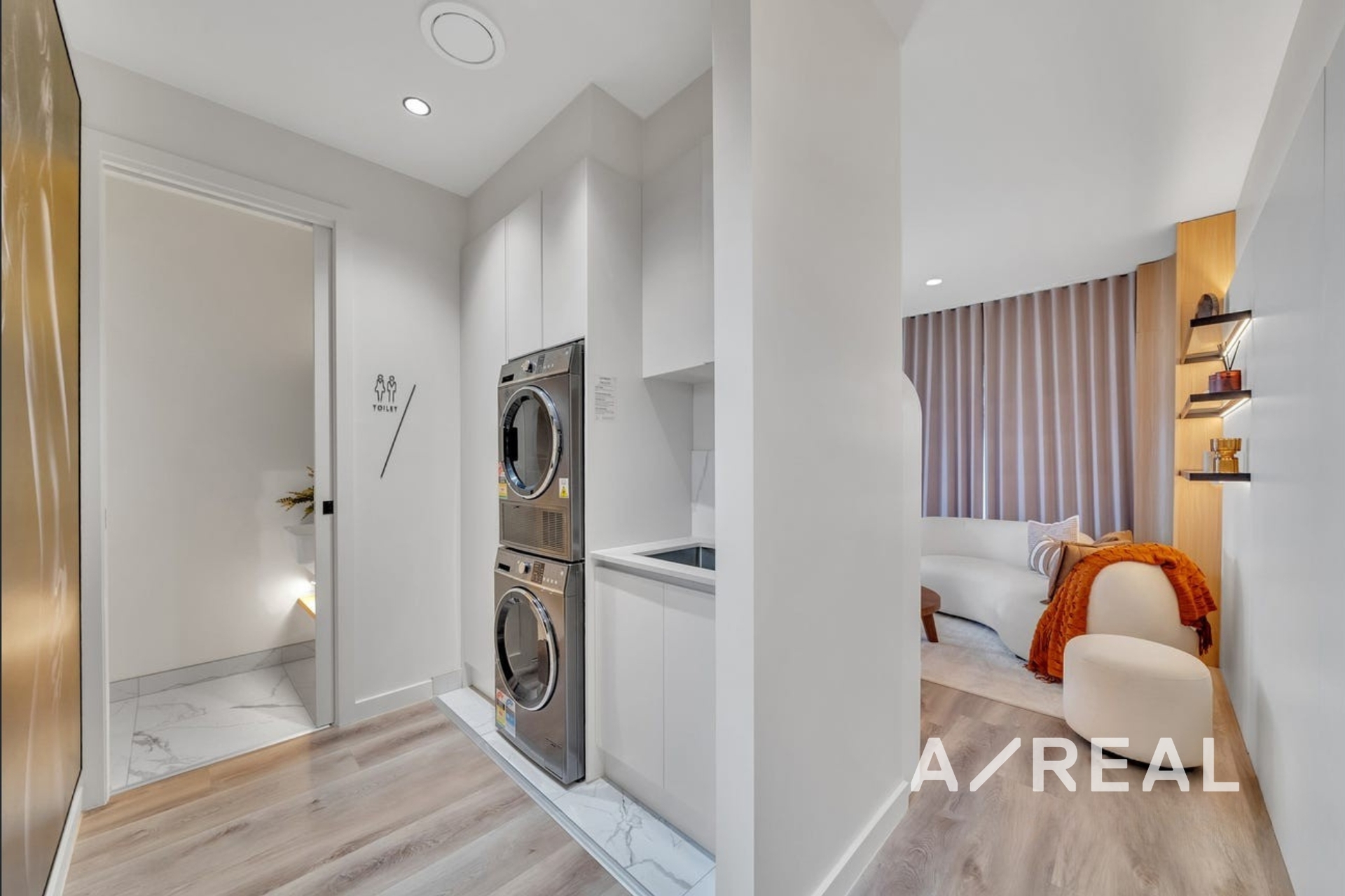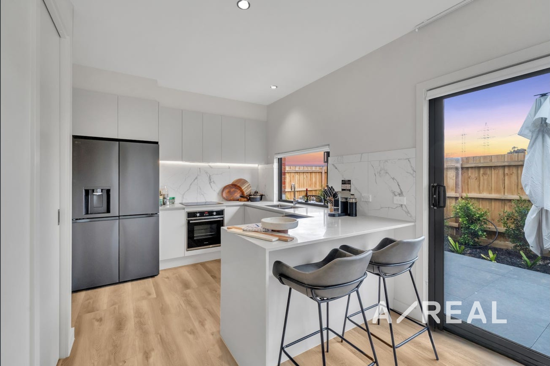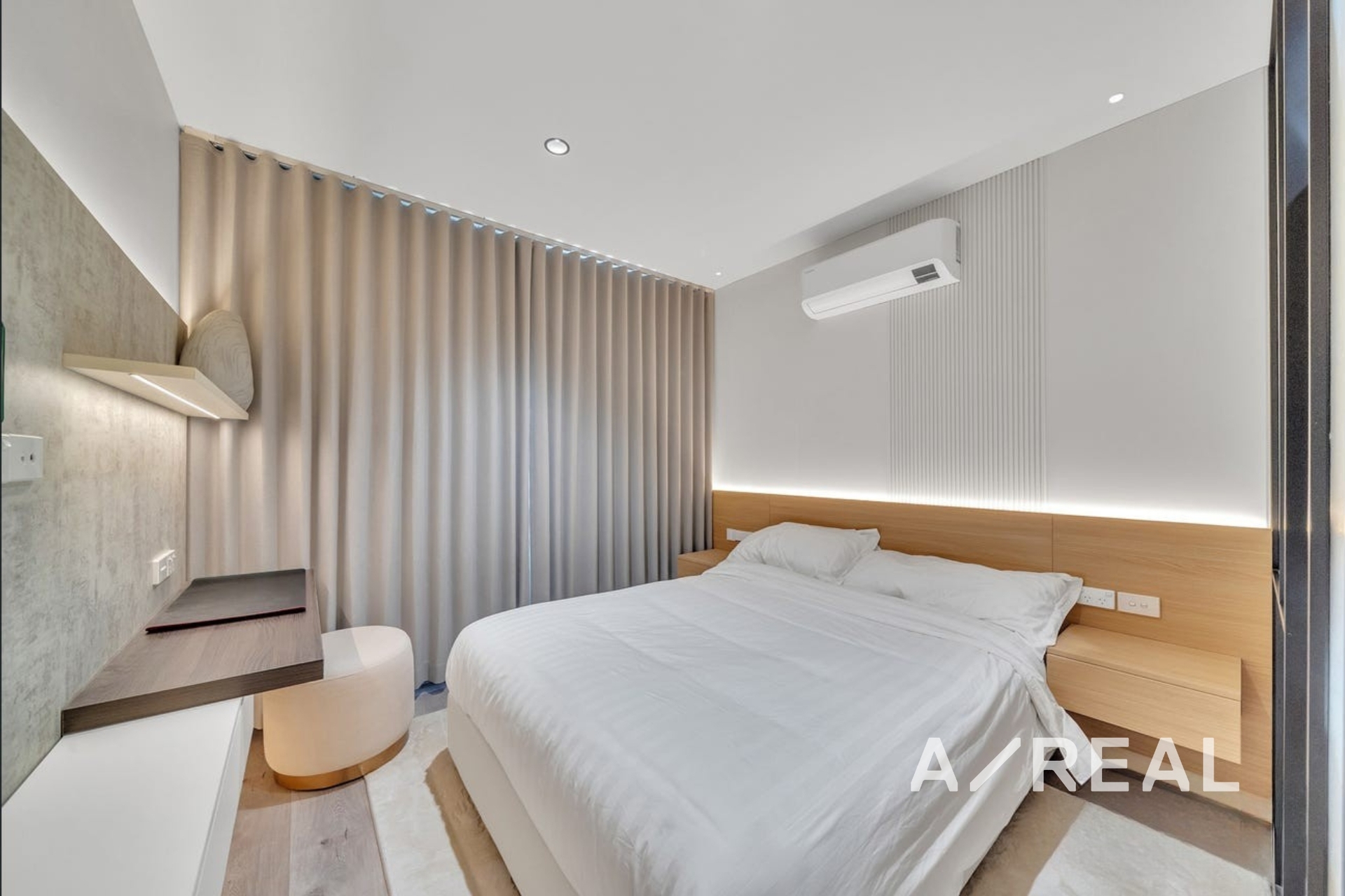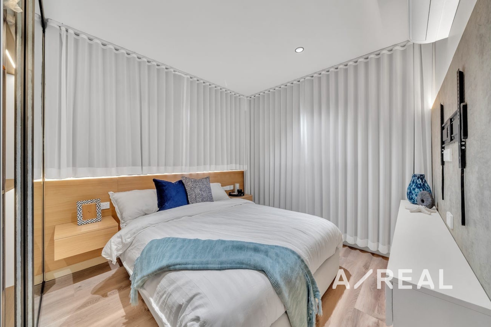 Premium finishes throughout, including double-glazed windows and doors, motorised curtains, and durable hybrid flooring.