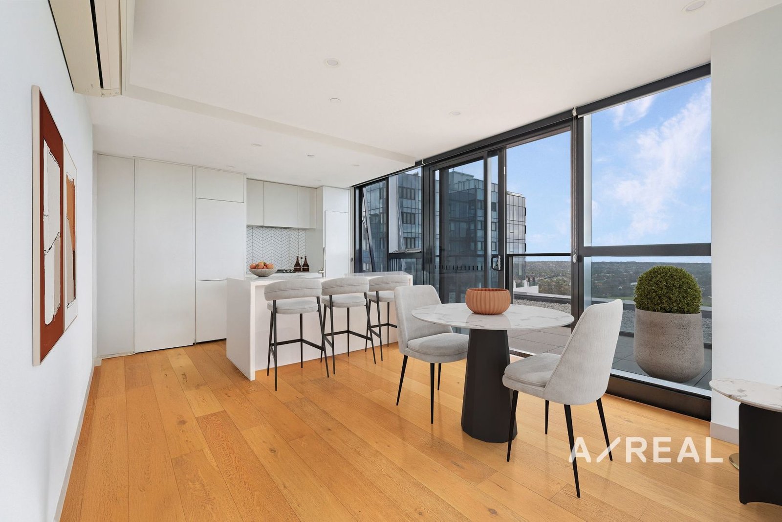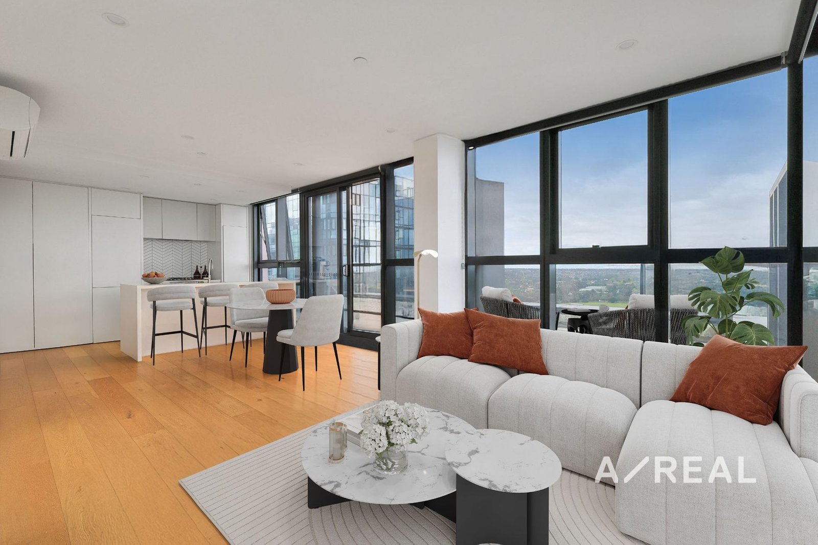 Bathed in natural light, the open-plan living and dining area showcases elegant timber floors, full-height windows, and seamlessly connects to a gourmet, stone-topped kitchen featuring premium appliances - the perfect setting for everyday enjoyment. Transitioning outdoors, a huge full-width balcony creates a private sanctuary for entertaining, with stunning views (including the city) as a beautiful backdrop for relaxation.