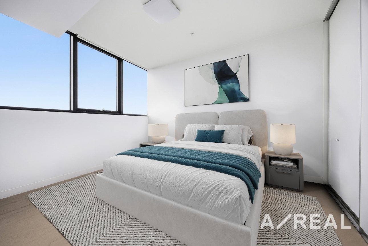 Step into a beautifully curated space finished in warm natural tones and flooded with natural light. The open-plan living and dining area flows seamlessly to a private balcony, creating an ideal setting for morning coffee or evening relaxation overlooking the skyline. The designer kitchen features stone benchtops, stainless-steel appliances and excellent storage, while the plush bedroom includes mirrored built-in robes and soft carpeting. A sleek, fully tiled bathroom and Euro laundry complete the layout.