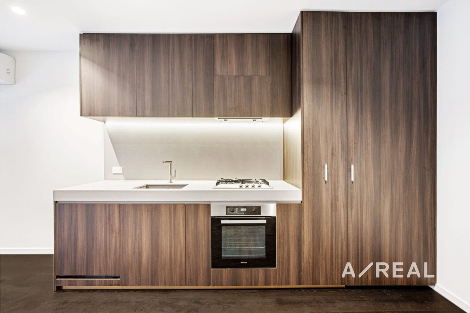 This brand new and immaculately presented one-bedroom apartment features a generous open plan living and dining area, complemented by a sophisticated kitchen fitted with top-of-the-range appliances and a striking stone benchtop. The spacious bedroom includes built-in robes, while the stylish bathroom is fully tiled and enhanced with a practical shower bench. Throughout the home, rich timber flooring and premium fixtures contribute to an elevated modern finish.