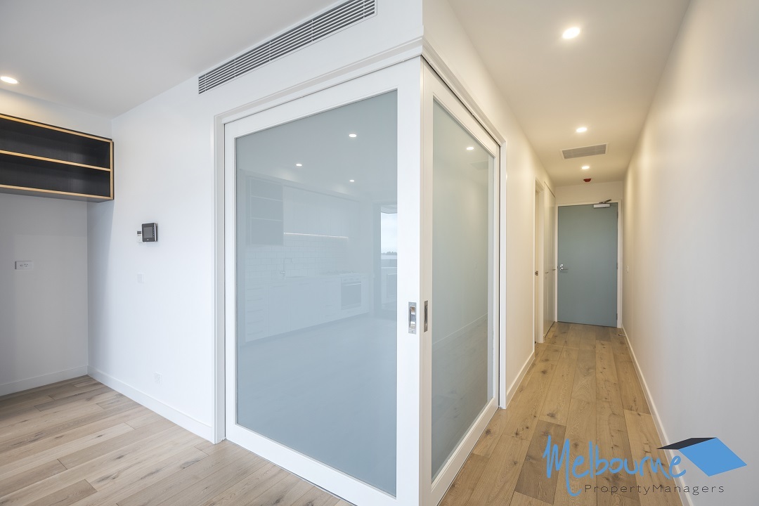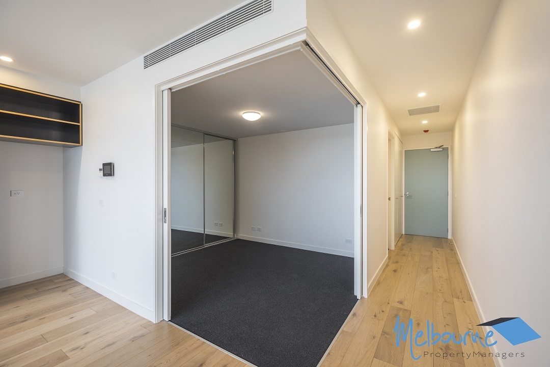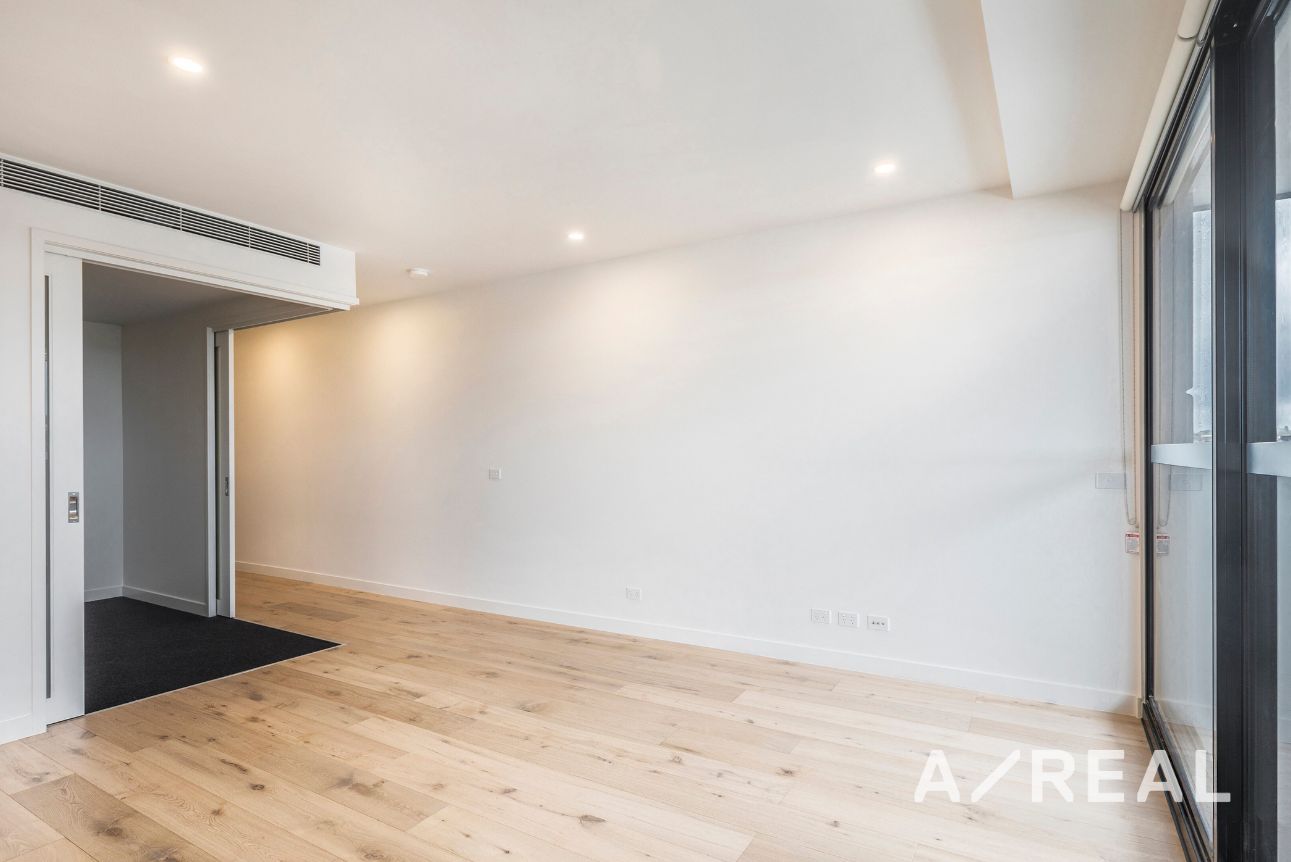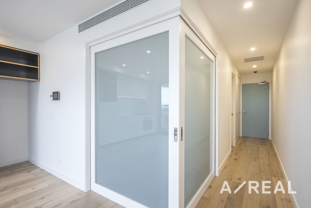 This luxurious apartment features premium fixtures and fittings throughout, there is a stylish mixture of carpet and floorboards as well as great sized living space with plenty of natural light. The bedroom has a smart built in robes with shelves, drawers and hanging sections to ensure ample storage space! The fully equipped kitchen has a stone bench top and stainless-steel gas appliances. The sparkling bathroom is modern with a large amount of storage and European laundry. The floor to ceiling glass doors leads to a good-sized balcony with a view that is sure to impress.