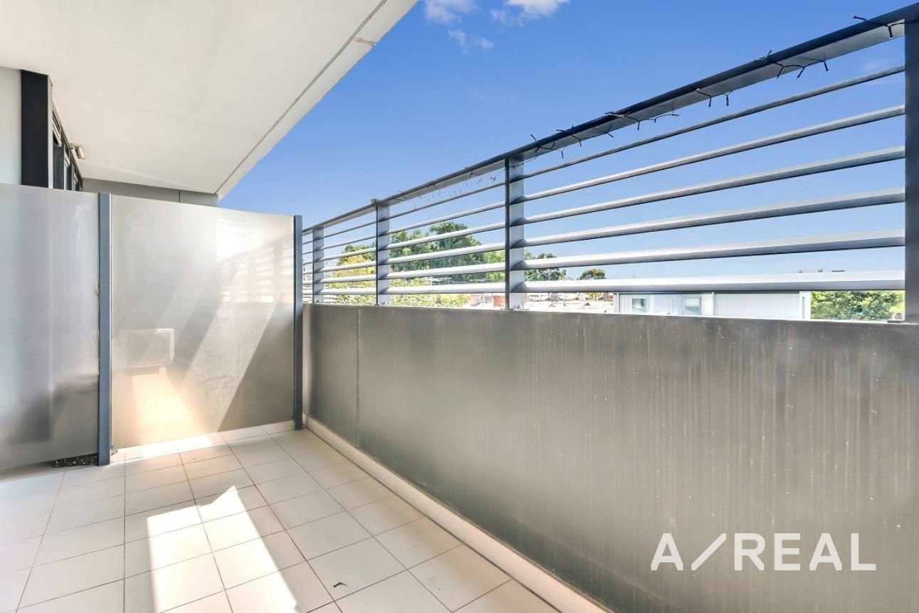 Natural light floods the space through large floor-to-ceiling windows and a sliding door leading out to your private balcony, creating a bright and welcoming atmosphere. The fully equipped kitchen boasts a stone benchtop, ample cupboard space, a dishwasher, and gas appliances, making meal preparation a breeze. The spacious bedroom includes smartly designed built-in robes, providing plenty of storage space. The sparkling bathroom is fitted with sleek fixtures, offering excellent storage and a frameless shower for a luxurious feel. Enjoy year-round comfort with ducted heating and cooling, plus the added convenience of a European laundry.