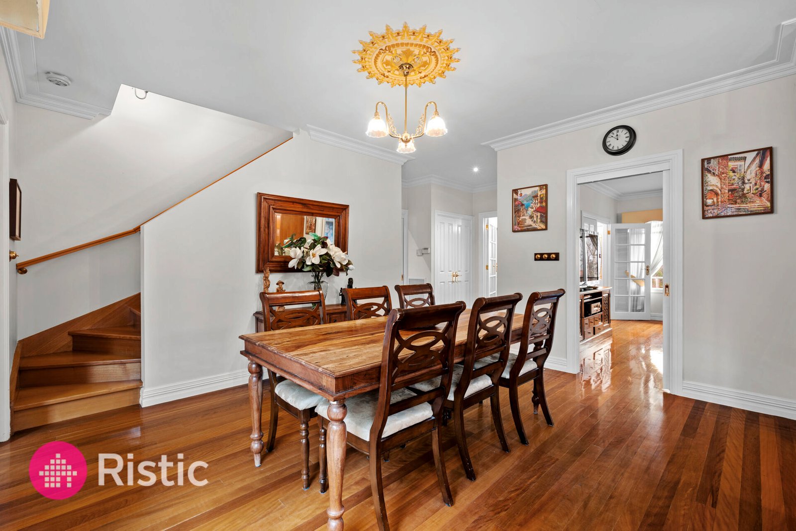 - Detailed ceiling rosettes and classic light fittings add timeless charm