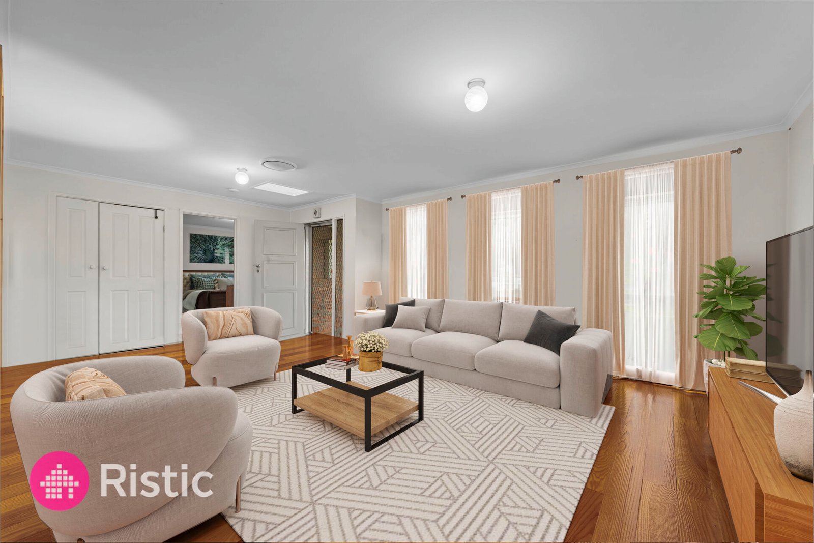 Step inside to a spacious, light-filled living area adorned with polished timber floors and expansive windows, creating a warm and welcoming atmosphere. The adjacent modern kitchen boasts ample storage, quality appliances, and a breakfast barperfect for casual meals and entertaining.