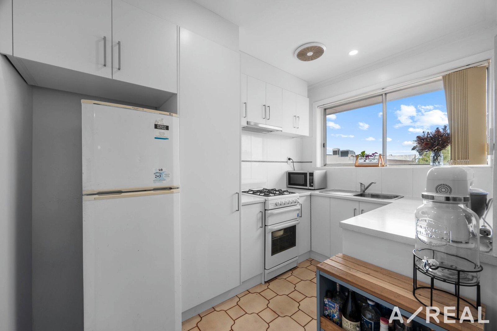 The kitchen is bright and modern, with an upright oven and gas cooktop plus ample bench space.