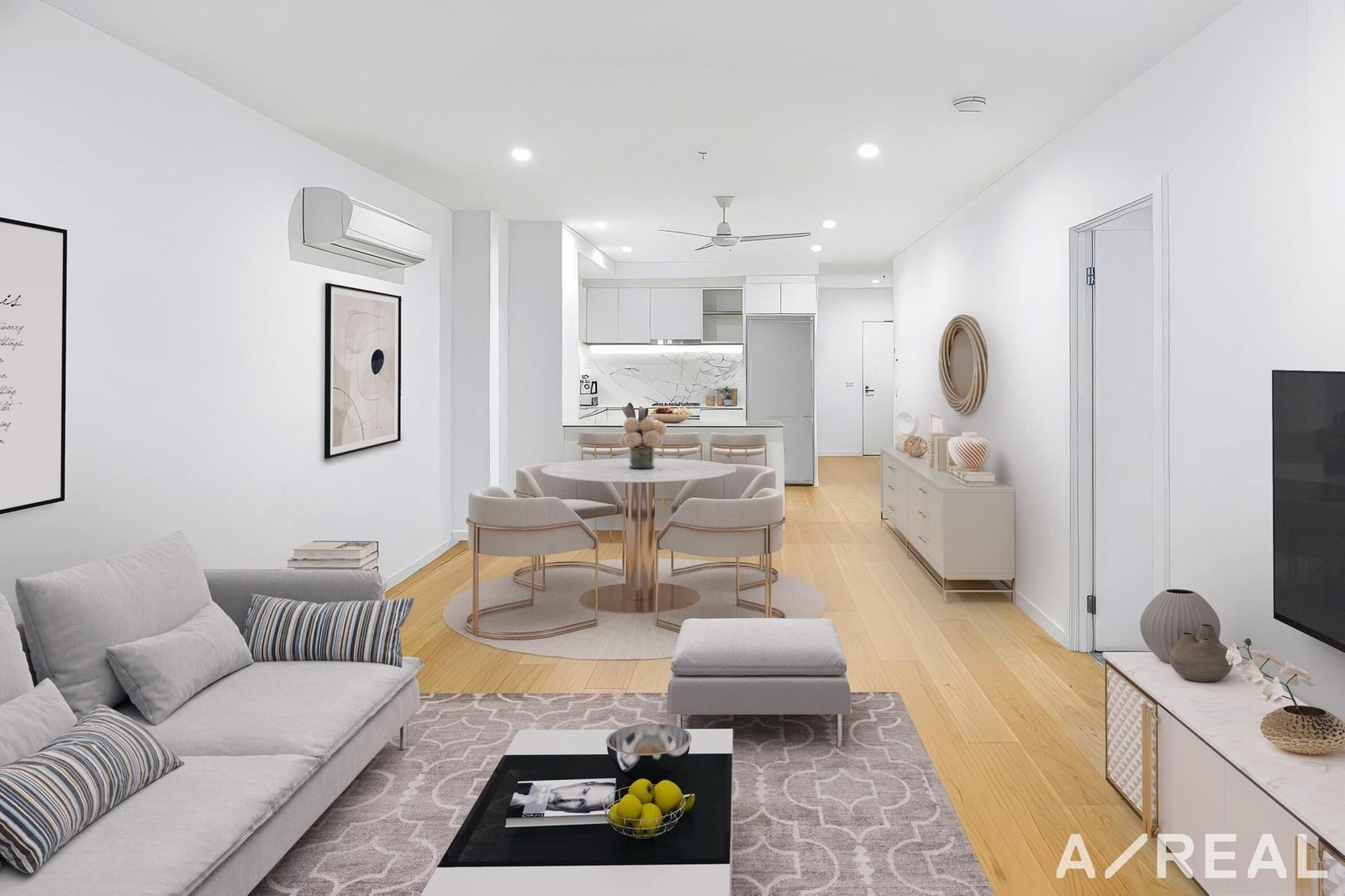 Step inside to discover a bright, open-plan living and dining zone with engineered timber flooring and floor-to-ceiling windows that capture natural light throughout the day. The sleek kitchen showcases quality finishes, stone benchtops, and stainless-steel appliances, flowing seamlessly onto a generous balcony perfect for morning coffee or evening entertaining.