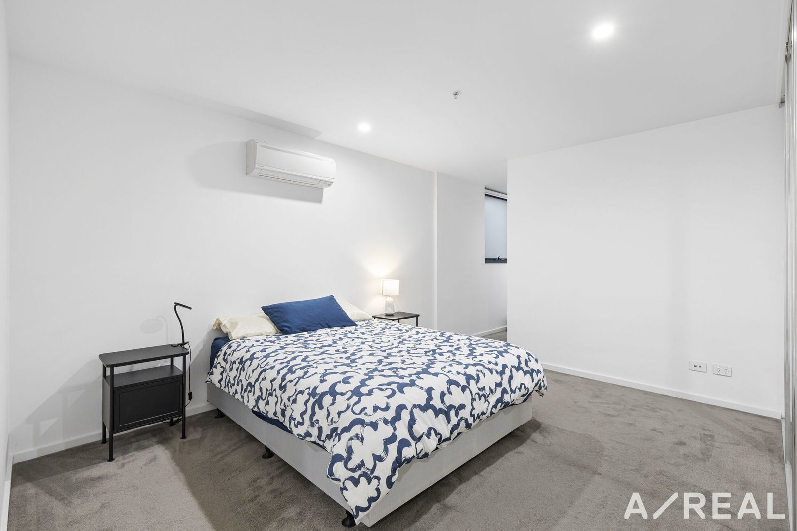The residence features two spacious bedrooms with mirrored built-in robes, the master bedroom also featuring an additional storage hub or boudoir and a full ensuite with large shower. There is also a third bedroom/study and a central spacious bathroom (again with larger than average shower). Additional features include a European laundry, with custom-built cabinetry for ample storage, dual split-system heating and cooling, secure intercom entry, lift access, and two car spaces with a storage cage