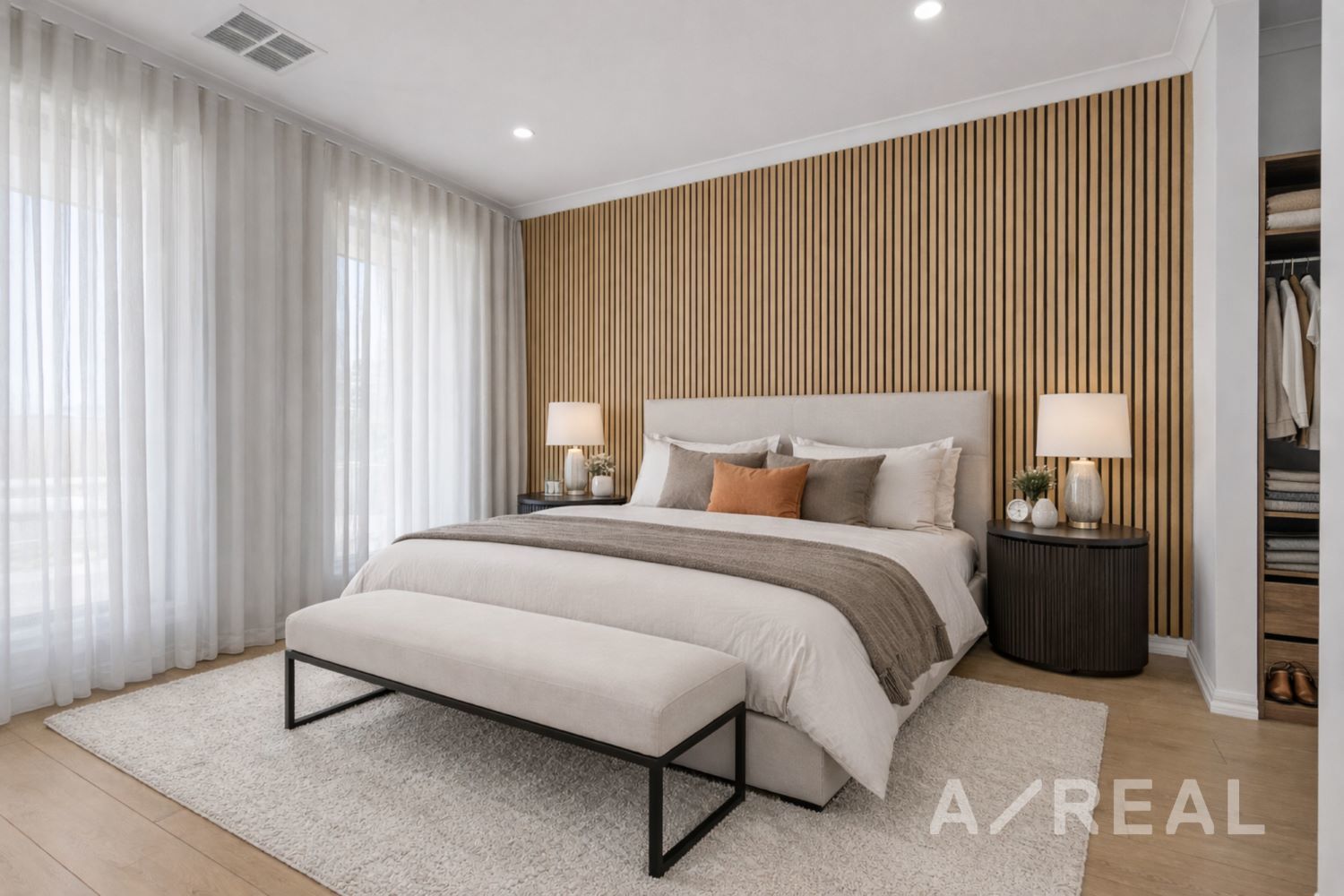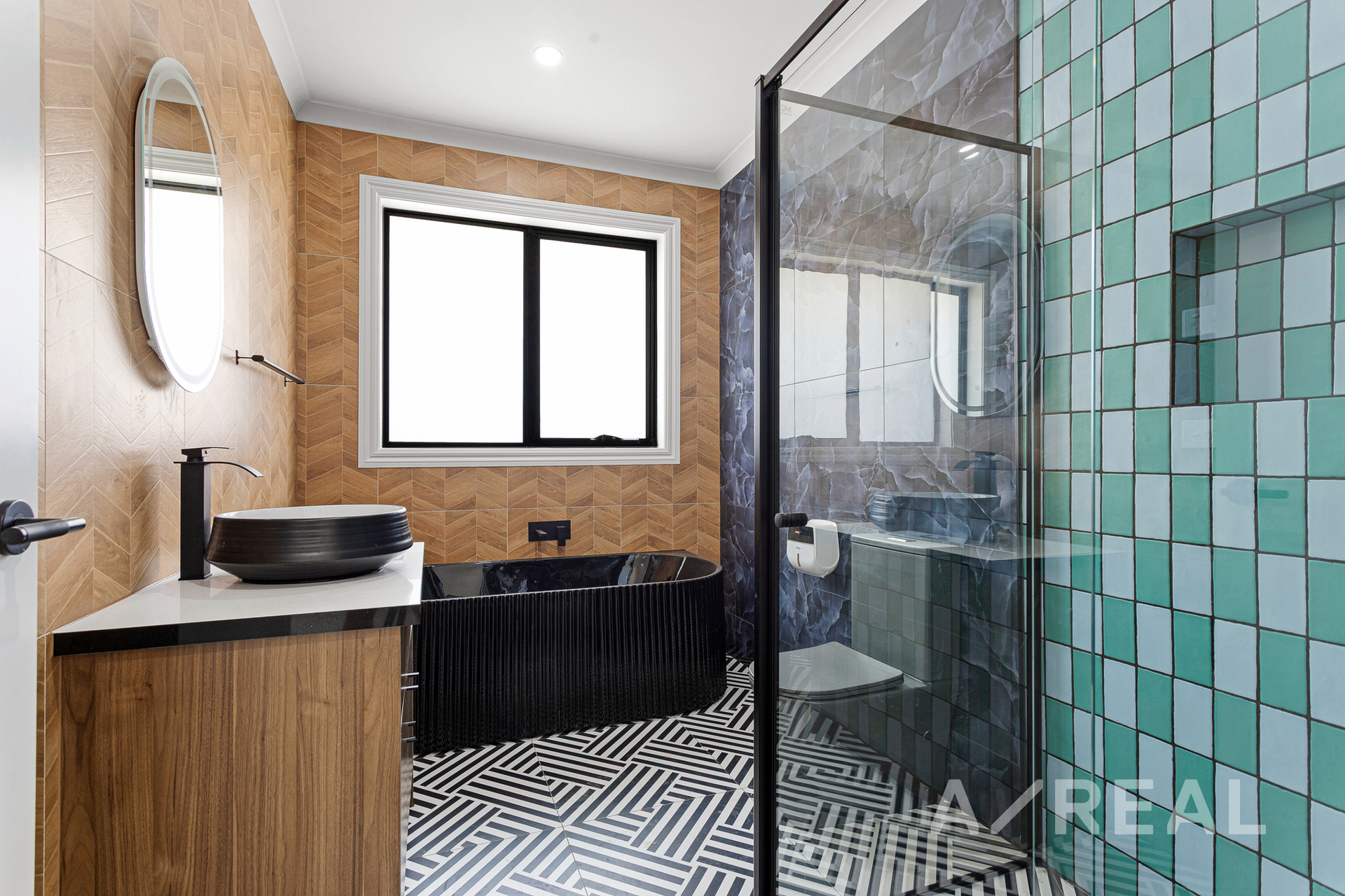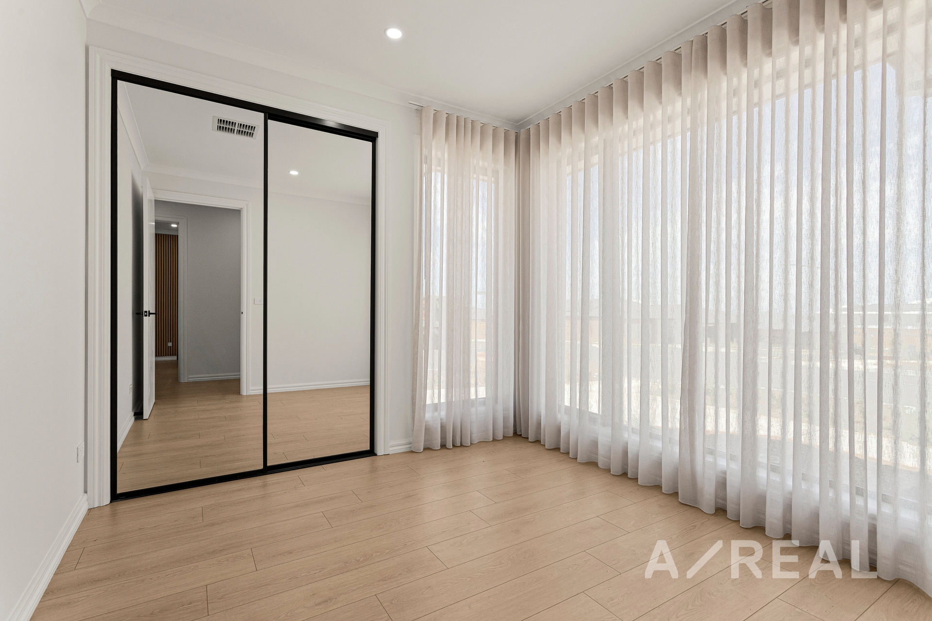The master bedroom is privately positioned at the front of the home, providing a peaceful retreat complete with a walk-in robe and sleek ensuite featuring a full-height 2100mm shower screen. Two additional bedrooms are generously sized and include built-in robes, making them ideal for children, guests, or a home office. These rooms are serviced by a central bathroom with a separate shower and bathtub, also enhanced by a high 2100mm shower screen for added comfort and a premium finish.